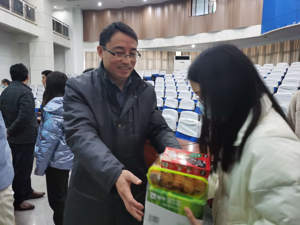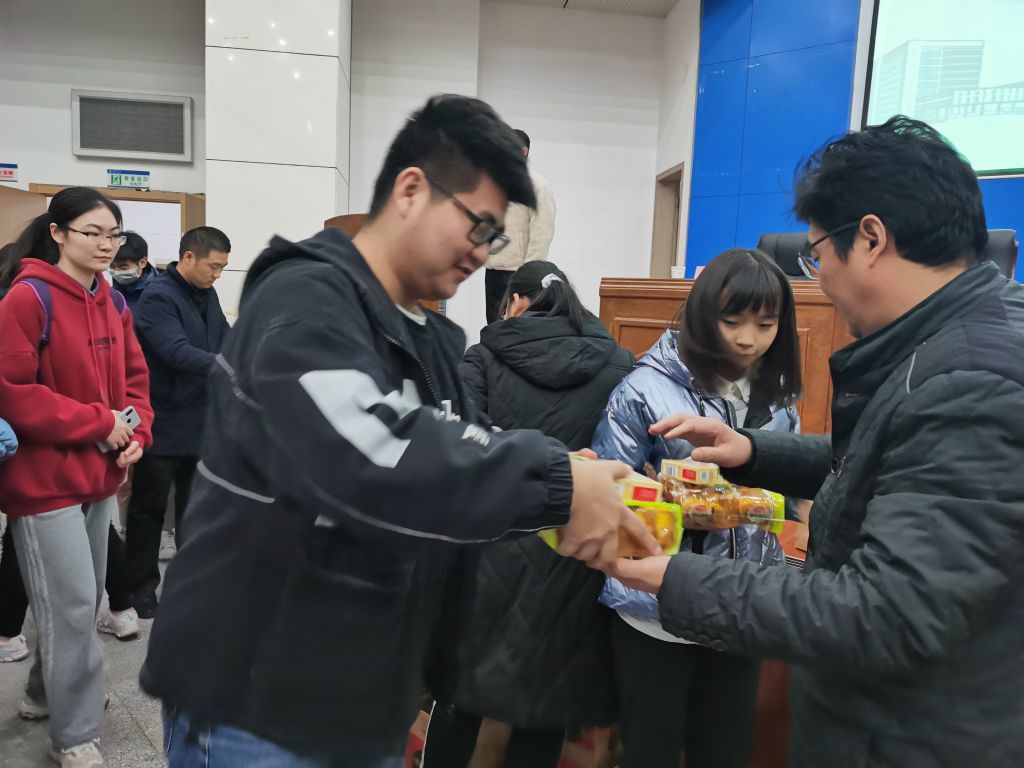 李古州围绕宿舍用电、疫情防控、防诈防骗等方面向同学们做了冬季校园安全提醒,强调在专注于考研就业的同时,要强化安全意识,筑牢安全底线。会后,学院领导老师为2022届毕业生逐一发放慰问品,并亲切交谈,以微笑和鼓励给学生传递力量!