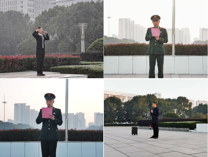 2021级学科教学(化学)专业研究生吴红波作为退役大学生发言,他说升旗仪式是庄严肃穆的,国旗代表的并不仅仅是简单的一面旗帜,国旗是我们祖国站起来强起来的象征,是我们爱国主义精神承载的支柱,更是我们每个中华儿女心中最纯洁最神圣最不容侵犯的情怀与担当。天下兴亡,匹夫有责,位卑未敢忘忧国,如今的美好生活是前辈先烈们前仆后继用鲜血换来的,我们要心怀爱国情怀,肩负起新时代青年人的使命。