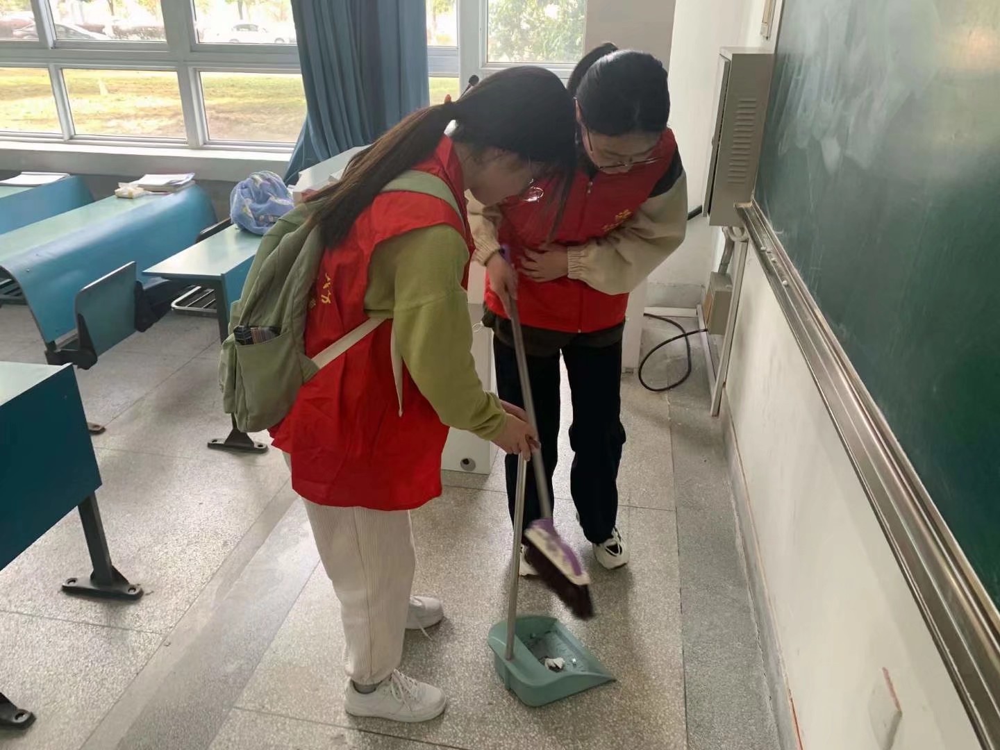 各班级开展学雷锋主题班会,集体观看雷锋纪录片,并向班级学生宣讲垃圾分类小知识。在学习雷锋精神的同时,各班级自发组织人员打扫教室,清洁卫生,并将宿舍楼下车辆摆放整齐,为校园建设贡献一份力量。其中,2020级应用化学专业的学生结合劳动周,开展道路保洁、绿化等劳动工作; 2021级部分学生在辅导员的带领下,前往化材楼羽毛球场,进行清洁工作。