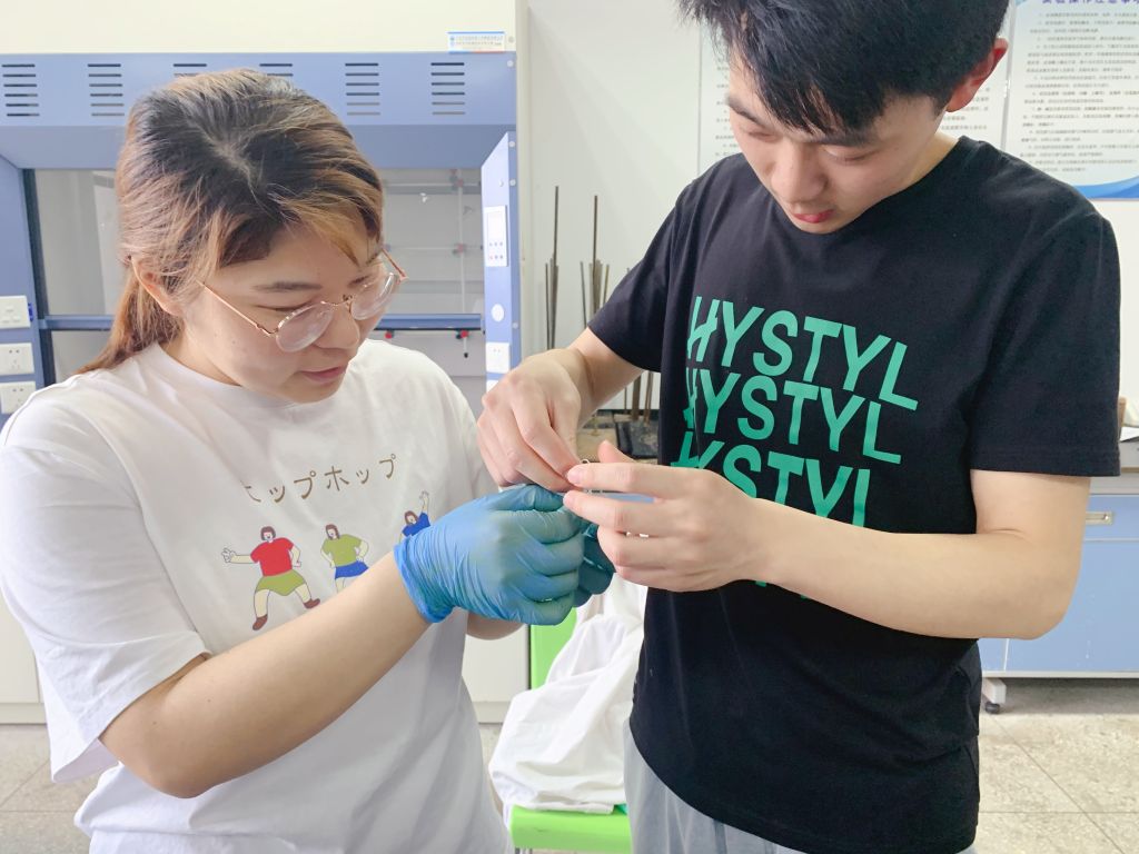化材学子们发挥主动创造性,以红色文化标识等为主要内容,设计出创意图案,并在老师的指导下走进实验室,利用化学科学专业知识与技能,通过溶液、熔融、化学气相沉积等方法制作与主题相关的创意晶体。在制作晶体过程中,每个团队的同学齐心合作,秉承着认真细致的科研精神,自行设计化学实验并制作出了具有红色寓意的晶体。同时,同学们通过自主设计性实验提升了自己的实验操作能力和创新能力,有的团队利用硝酸和氢氧化钴的反应,利用超声和重结晶,得到红色晶体后将其拼凑成“100”的图案,为党的百年诞辰送上真挚的祝福;有的团队则利用橙红色的重铬酸钾晶体等加工绘制成图案,致敬党的百年华诞;有的团队用搭建好的框架自然结晶沉淀出相应的“100、五角星、党徽等图案,庆祝中国共青团建团100周年;有的则充分发挥自身想象力,利用碘化铅等试剂设计出“百年‘晶’‘碘’,传承‘铅’载”的晶体作品。