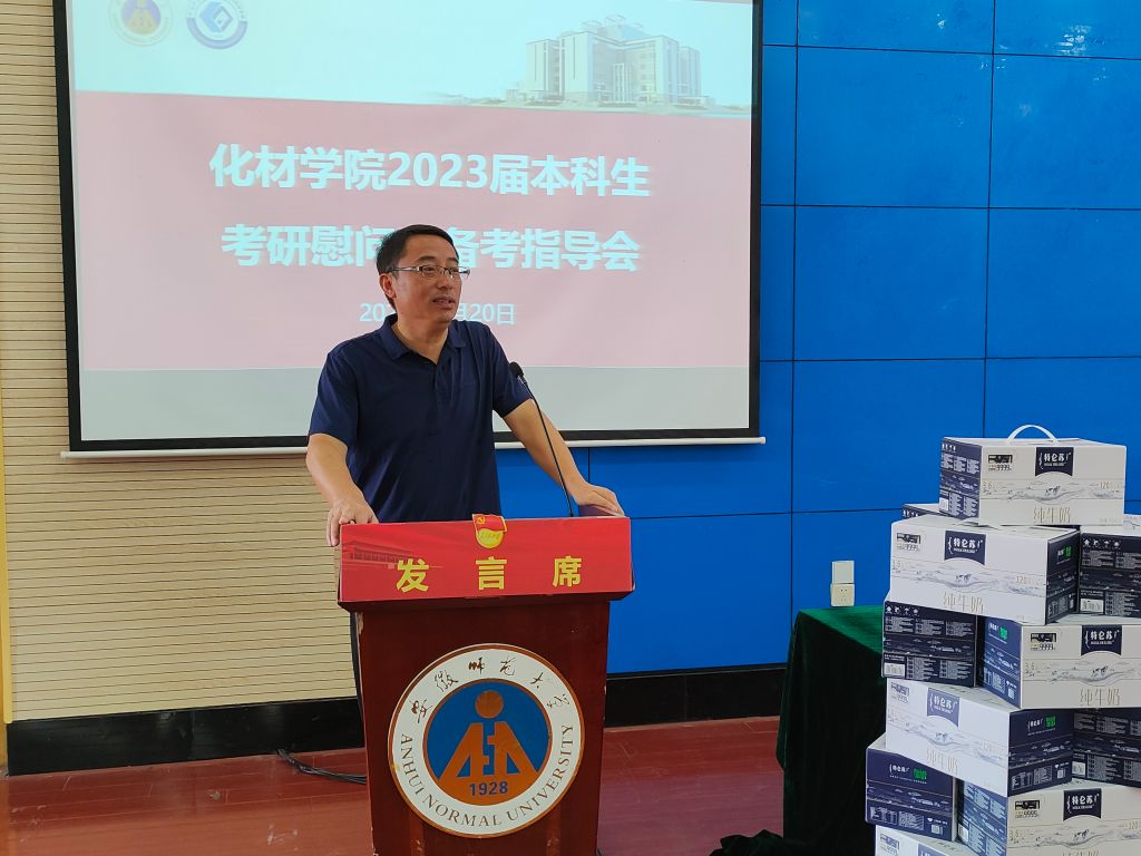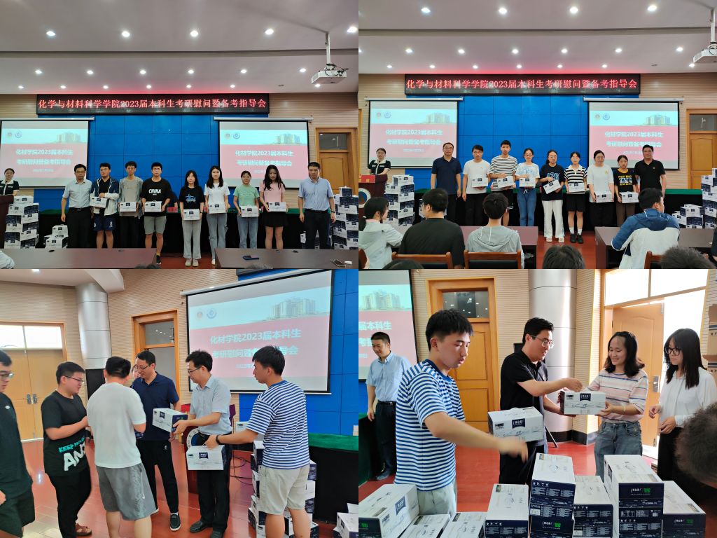 会上,汪俊武首先对同学们坚持留校刻苦学习并保有高昂的精神面貌表示肯定与赞赏,也对同学们提出了建议:一是坚持就是胜利,既然选择了考研就要坚持下去,成功走向考场;二是有信心,才有力量,要学会给自己加油鼓劲;三是勤奋高效,是走向成功的保证,除了学业上的明确规划和努力,还要加强运动,拥有好身体才有清醒的头脑。高峰叮嘱同学们当下一定要有明确的目标,不能继续徘徊,要有规划,持之以恒的复习备考,同时还要有信心,相信自己努力一定会有收获!方臻就专业课复习讲解了暑期备考策略、复习方法和相关注意事项。李古州围绕暑期留校学生常态化疫情防控、核酸检测、在校安全等方面作了重点提醒。会后,学院领导老师为留校考研集训学生分发了慰问品。