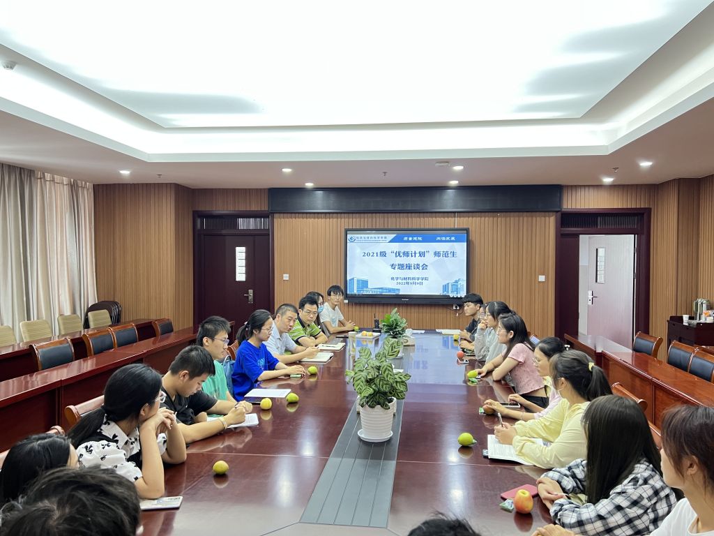 本网讯(美高梅4858线路登录 陶勇)第三十八个教师节来临之际,习近平总书记给北京师范大学“优师计划”师范生回信,对他们寄予殷切期望,勉励他们珍惜时光,刻苦学习,砥砺品格,增长传道授业解惑本领,毕业后到祖国和人民最需要的地方去,努力成为党和人民满意的“四有”好老师,为培养德智体美劳全面发展的社会主义建设者和接班人贡献力量。9月9日上午,美高梅4858线路登录召开了2021级化学“优师计划”师范生专题座谈会,学习习近平总书记给北京师范大学“优师计划”师范生回信精神,交流心得体会,学院副院长方臻、辅导员陶勇和全体“优师计划”学生参加了座谈会,会议由院党委副书记李古州主持。