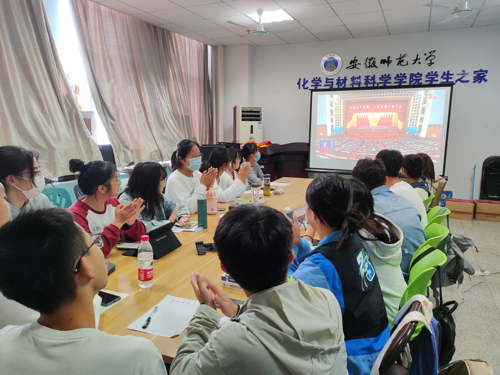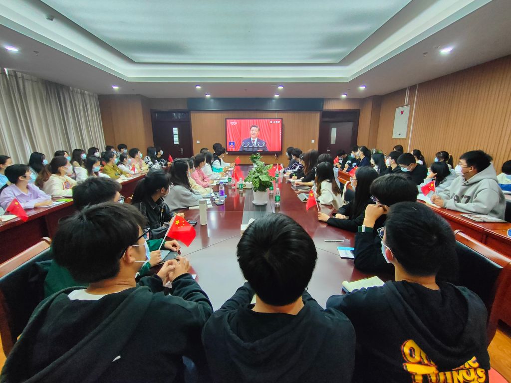 10月16日上午10时,中国共产党第二十次全国代表大会在北京人民大会堂隆重开幕,习近平总书记代表第十九届中央委员会作报告。美高梅4858线路登录党委高度重视,积极组织师生在礼勤楼702、707、717会议室以及各教室等多个会场收听收看大会盛况,其他师生积极自主通过网络视频、新闻报道等收看收听直播,热烈庆祝党的二十大胜利召开。