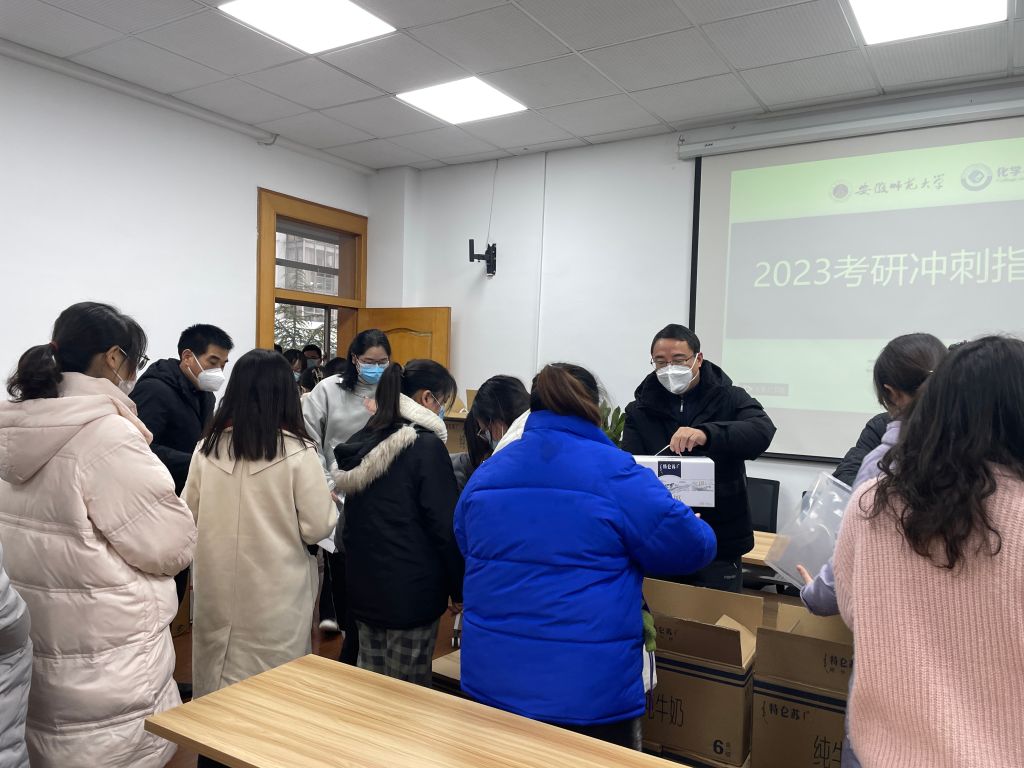 李古州在主持会议时强调,同学们要保持初心,要坚定信心,以最饱满的状态跑完研考初试最后一公里。他还就疫情防控、饮食安全、复习备考等方面作出相关提醒。会后,学院领导老师为考研学生代表发放了防疫包、考研文具包和牛奶等慰问品。