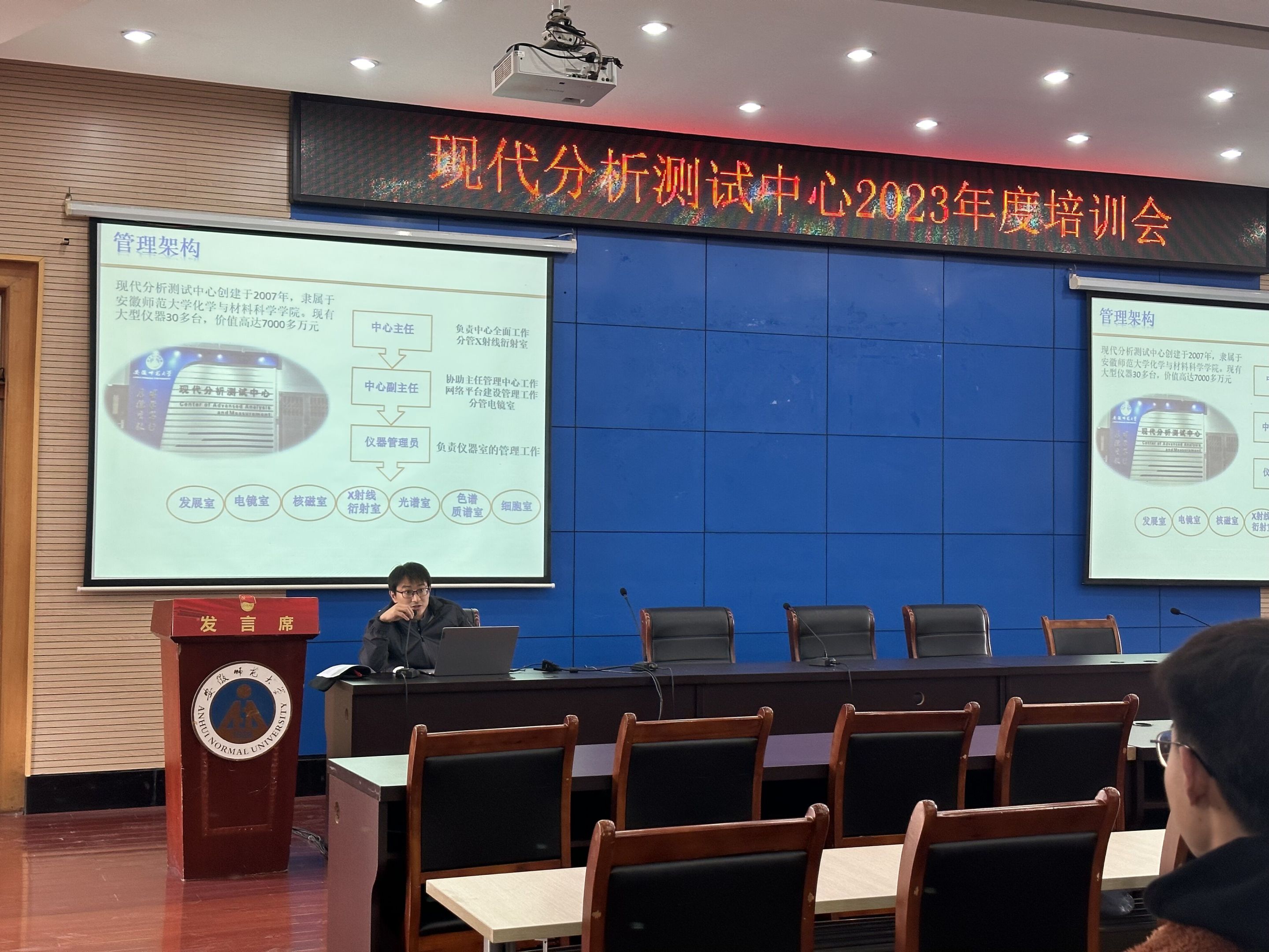 本网讯(美高梅4858线路登录 余晨捷、张薇)为充分发挥学院大型仪器设备的使用效率,保证教学和科研工作的顺利进行,帮助新进教师与研究生充分了解现有大型精密仪器设备的状况、功能、应用及其基本操作,3月28日上午,美高梅4858线路登录于花津校区会议中心第三报告厅举办现代分析测试中心2023年度大型仪器使用培训会。测试中心全体教师、2022年入职教师以及2022级全体研究生参加此次培训会,会议由测试中心副主任余楠主持。
