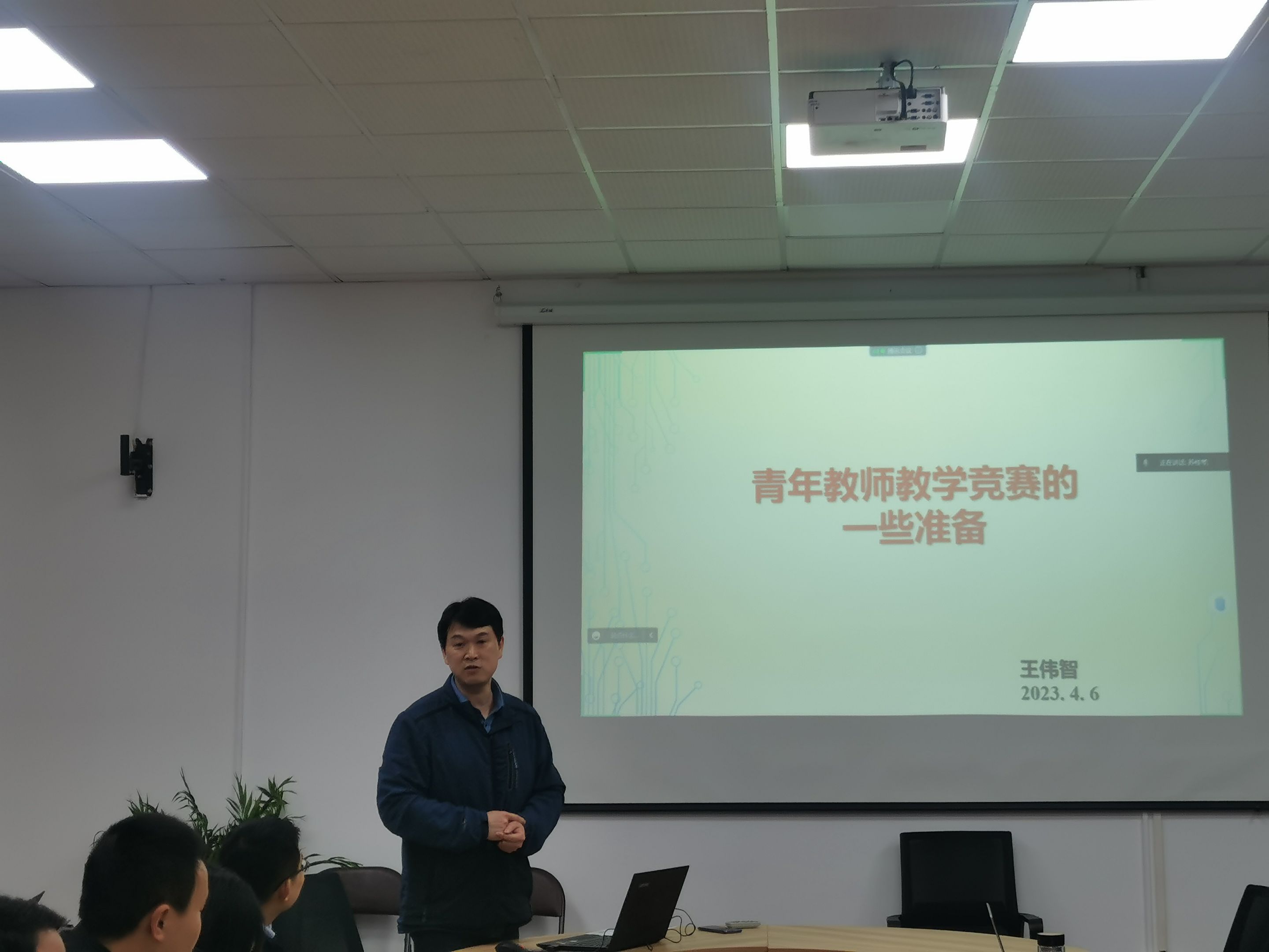 周冬冬、王伟智、李茂国三位老师分别与参会老师进行交流。青年教师代表周冬冬老师围绕教学设计、实施和反思,从教师的教学实践活动、教学设计的呈现形式及说课三个方面进行了交流;学院教学督导组成员王伟智老师结合自身参加青年教师教学竞赛的经历,详细介绍了安徽师范大学青年教师教学竞赛的内容和流程,并从教学内容选取、教学实施流程、教学设计原则等方向分享了自己参加课堂教学竞赛备赛的经验;学院教学督导组组长李茂国老师围绕本科课堂教学素材库建设及作业与命题进行了经验分享。他指出,教学竞赛和常规教学相辅相成,并从本科课堂教学素材库建设、本科课堂教学作业布置、本科课堂教学考核命题三个方面为与会老师做了详细介绍。会后,与会老师针对教学过程中的一些问题进行了充分交流研讨。