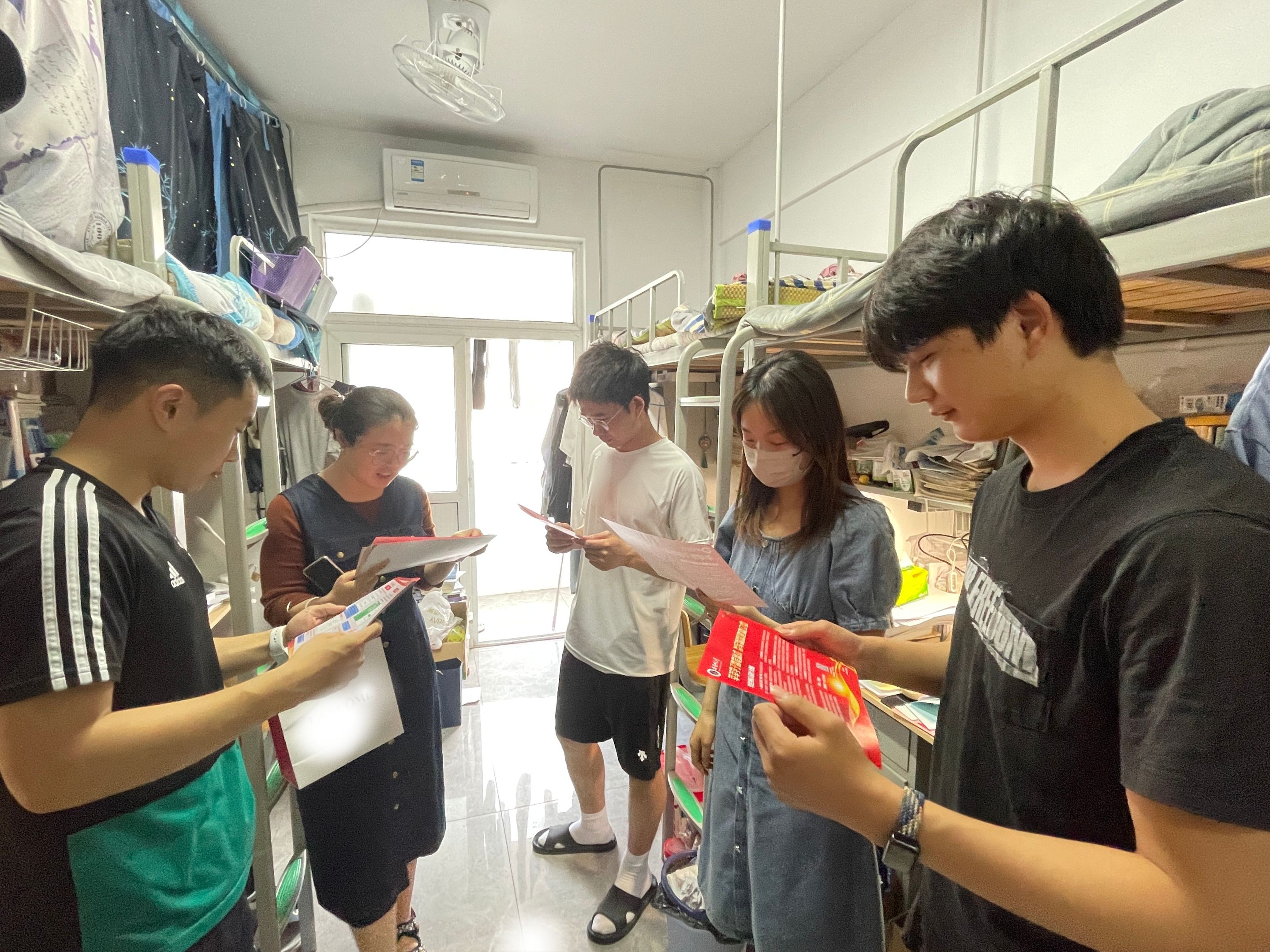 会后,辅导员深入学生宿舍详细介绍高校大学毕业生应征入伍可享有的考学考公、学费和助学贷款代偿以及退役后享受就学就业优惠等优抚政策。