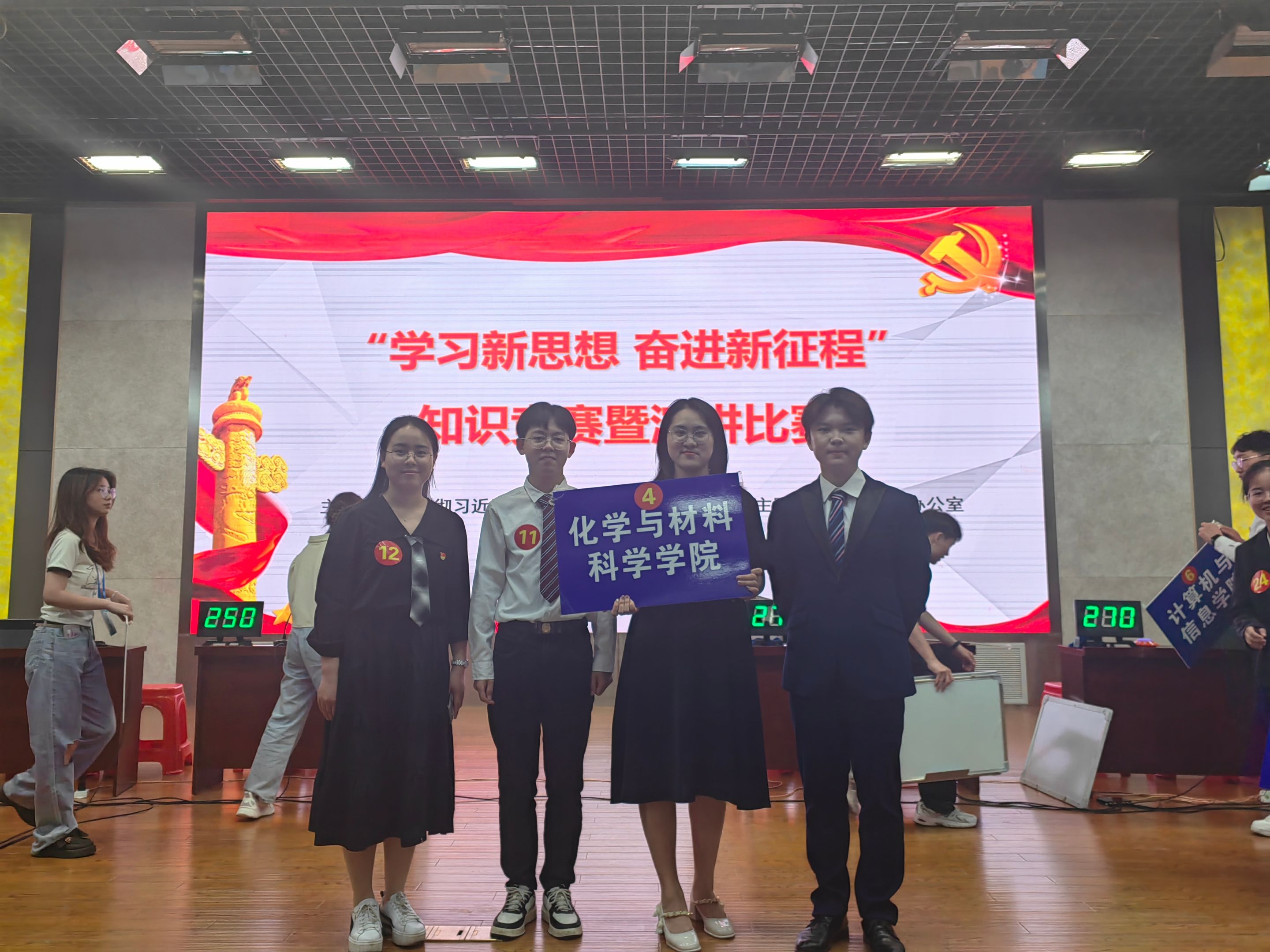 本网讯(美高梅4858线路登录 杜旻展)5月14日晚,学校“学习新思想、奋进新征程”知识竞赛暨演讲比赛决赛于实验实训大楼一楼报告厅举行,美高梅4858线路登录2022级化学师范专业杜旻展同学在演讲比赛中荣获一等奖,2019级应用化学专业吴泓婧、2020级应用化学专业朱会凌、2021级材料化学专业梅雨在知识竞赛中荣获二等奖。