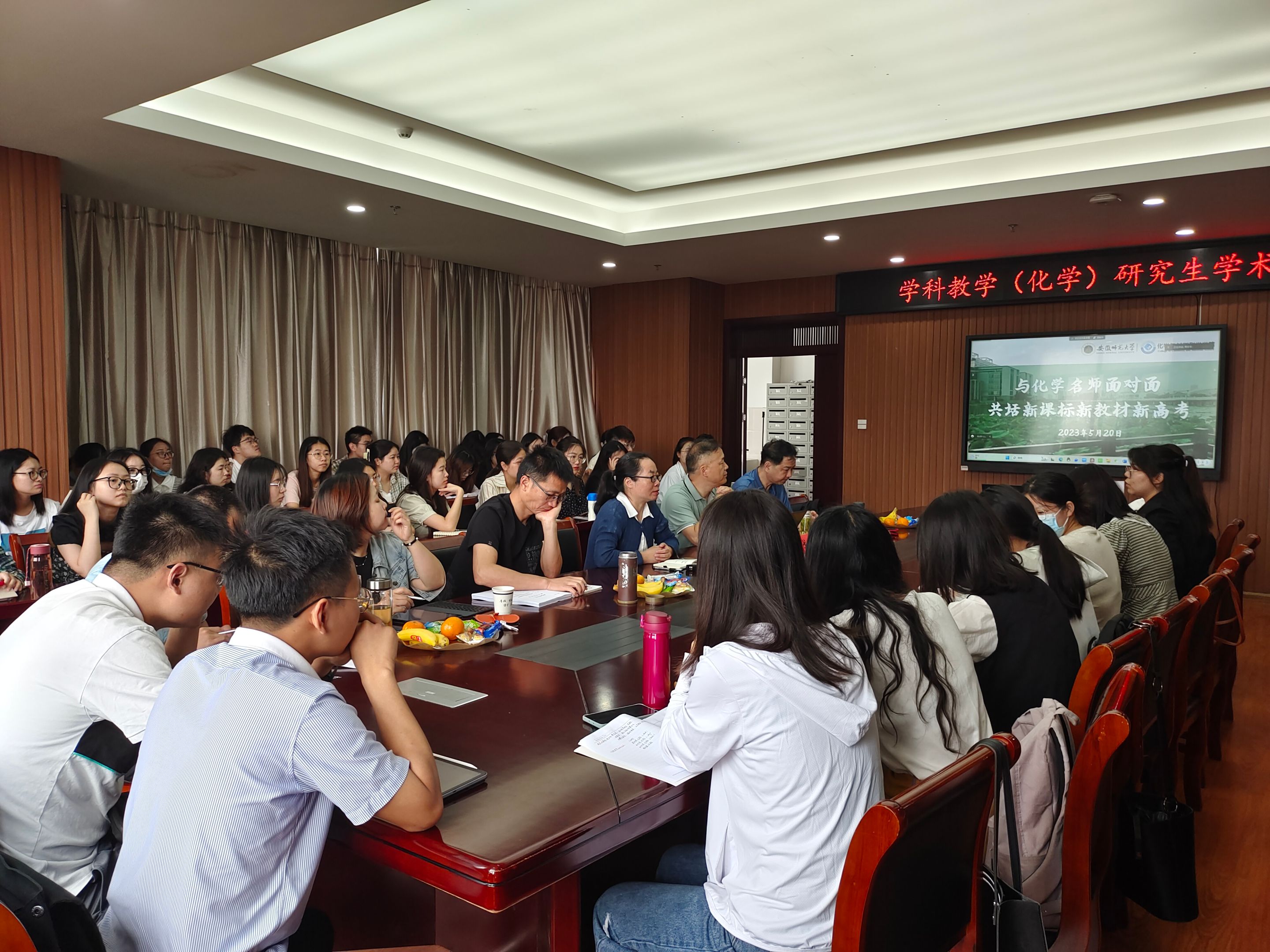 本网讯(美高梅4858线路登录 黄淑雯、张薇)为促进研究生对“新课标、新教材、新高考”的认识,提升其教学技能与教育研究水平,5月20日上午,美高梅4858线路登录于礼勤楼702会议室举行题为“与化学名师面对面 共话新课标新教材新高考”的学术沙龙活动。本次活动线上线下同步开展,特邀中科大附属中学教务处副主任戈益超与宣城市化学教研员徐泓两位化学名师开展主题讲座。美高梅4858线路登录部分教师、全体学科教学(化学)专业学生参加此活动,活动由学科教学(化学)点长孙影主持。
