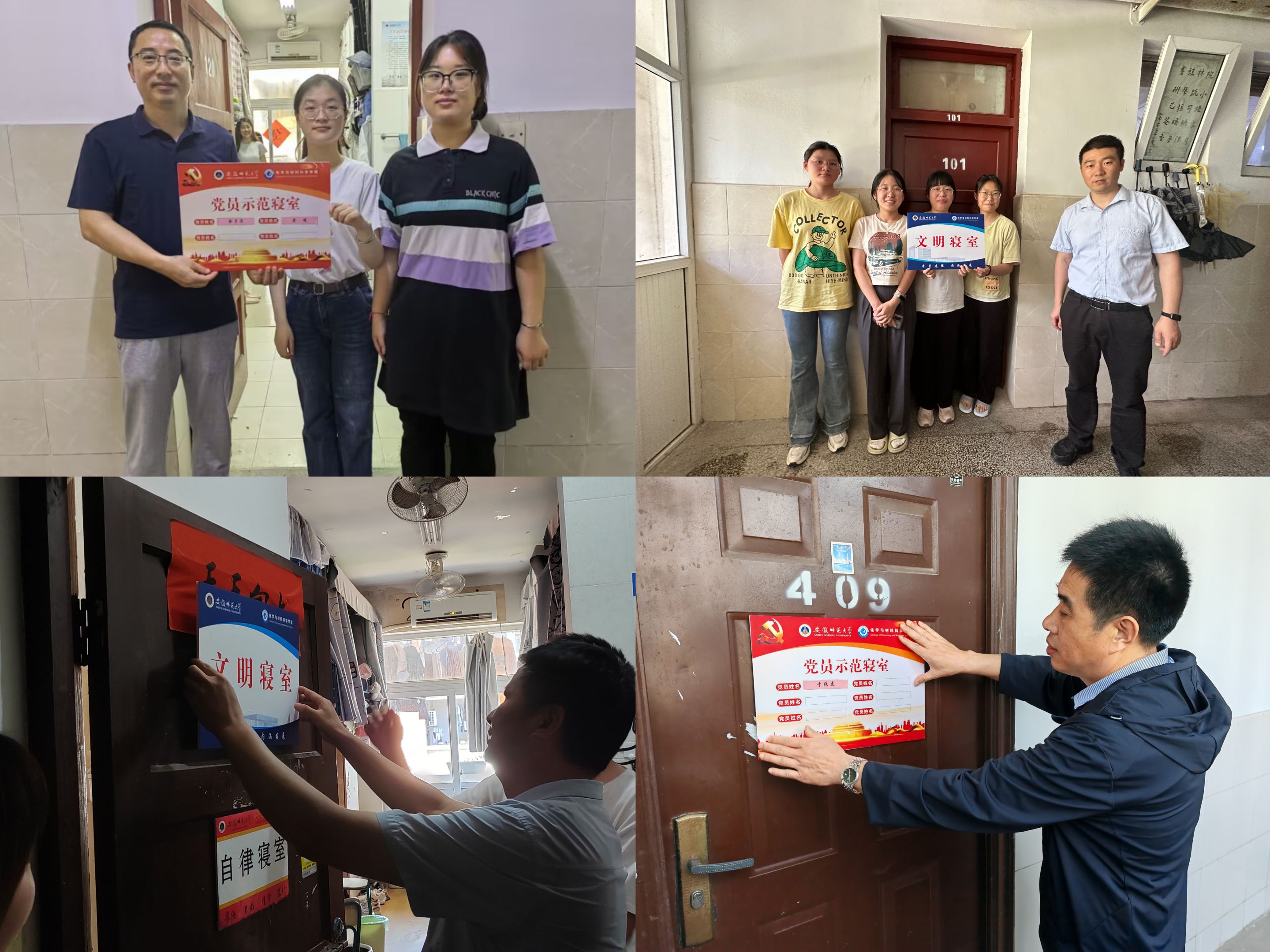 榜样引领,彰显文明素养。为促进学生养成良好的生活习惯,发挥学生党员在宿舍管理中的引领示范作用,共同营造健康文明、积极向上的校园宿舍文化,美高梅4858线路登录于6月8日开展了“文明寝室”及“党员示范寝室”挂牌行动,学院领导班子、全体专兼职辅导员参与此次挂牌行动。“党员示范寝室”、“文明寝室”创建活动是美高梅4858线路登录“六个文明”教育和一站式学生社区建设的重要组成部分,旨在发挥党员学生先进模范作用,促进学生宿舍自我管理,打造优秀宿舍文化,营造“温馨、安全、有序”的学习生活环境,共创“和谐、求知、上进”的寝室氛围。