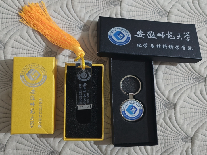 一届有一届的传承,一年又一年的创新,定制毕业“神秘礼物”是美高梅4858线路登录的老传统,今年采用的是专属“微印章”,透明印章的主体界面学校、学院及专业名称,院徽居于章体上方,印章的底部篆刻着每位毕业生的姓名,每一份都是独一无二的,初心铭于印,离别皆序章,一方印章,篆刻着化材学子在安徽师范大学美高梅4858线路登录的青春记忆。除此之外,还有定制钥匙扣、定制U盘、定制书签及师大明信片等礼物,承载着学院对毕业生的美好祝愿,即使毕业了,也永远不忘自己是师大人、是化材人。