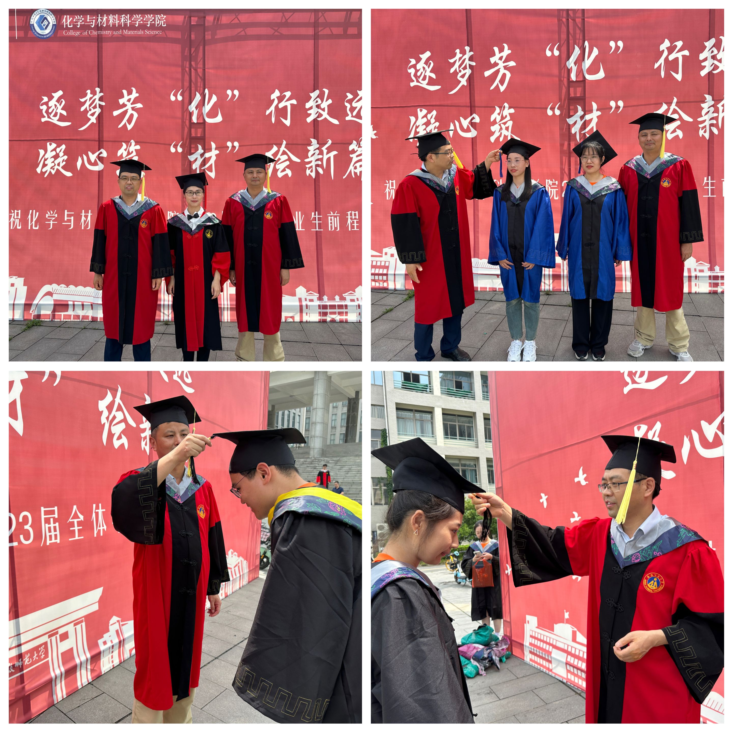 2023年6月20日上午,以“逐梦芳’化’行致远,凝心筑’材’绘新篇”为主题的美高梅4858线路登录2023届毕业典礼暨授位仪式在礼勤楼广场前如期举行。学院党委副书记李古州、副院长方周双六、方臻,毕业班辅导员陈静、王霞等多位老师亲临现场,为毕业生逐一拨穗正冠。毕业生们与老师、同学合影留念,定格下这一难忘画面。