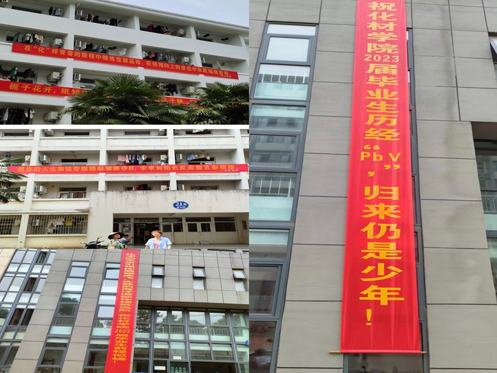 学院也在礼勤楼、21栋、18栋、52栋及53栋毕业生宿舍楼等地方摆放了精美展板、悬挂了毕业祝福,营造毕业生温暖的离校氛围。