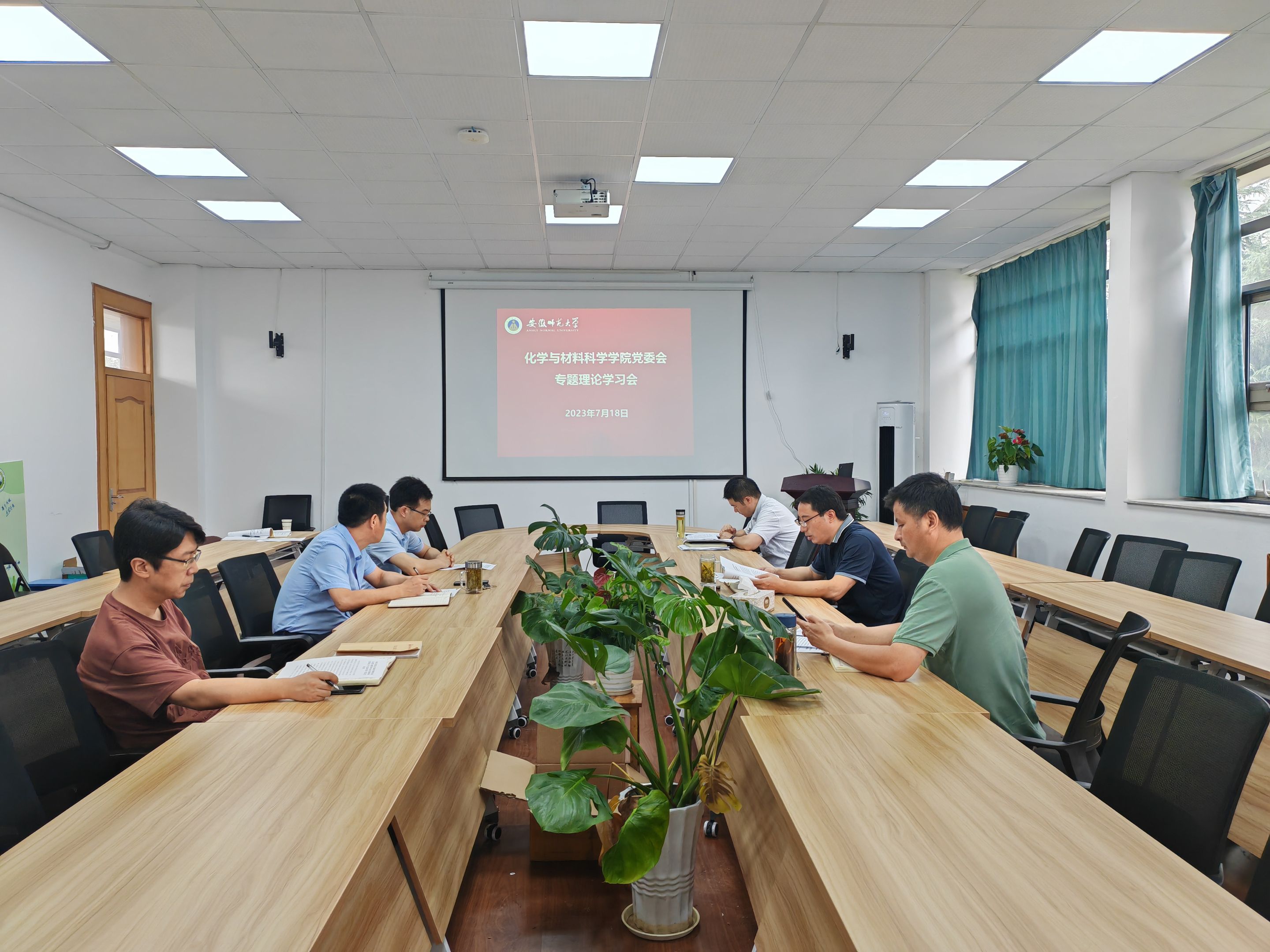 7月18日,美高梅4858线路登录组织召开党委会专题理论学习会,学习习近平总书记关于主题教育的重要讲话精神和指示批示精神,研究部署学院暑期主题教育工作,学院党委委员参加会议。会议由院党委书记汪俊武主持。