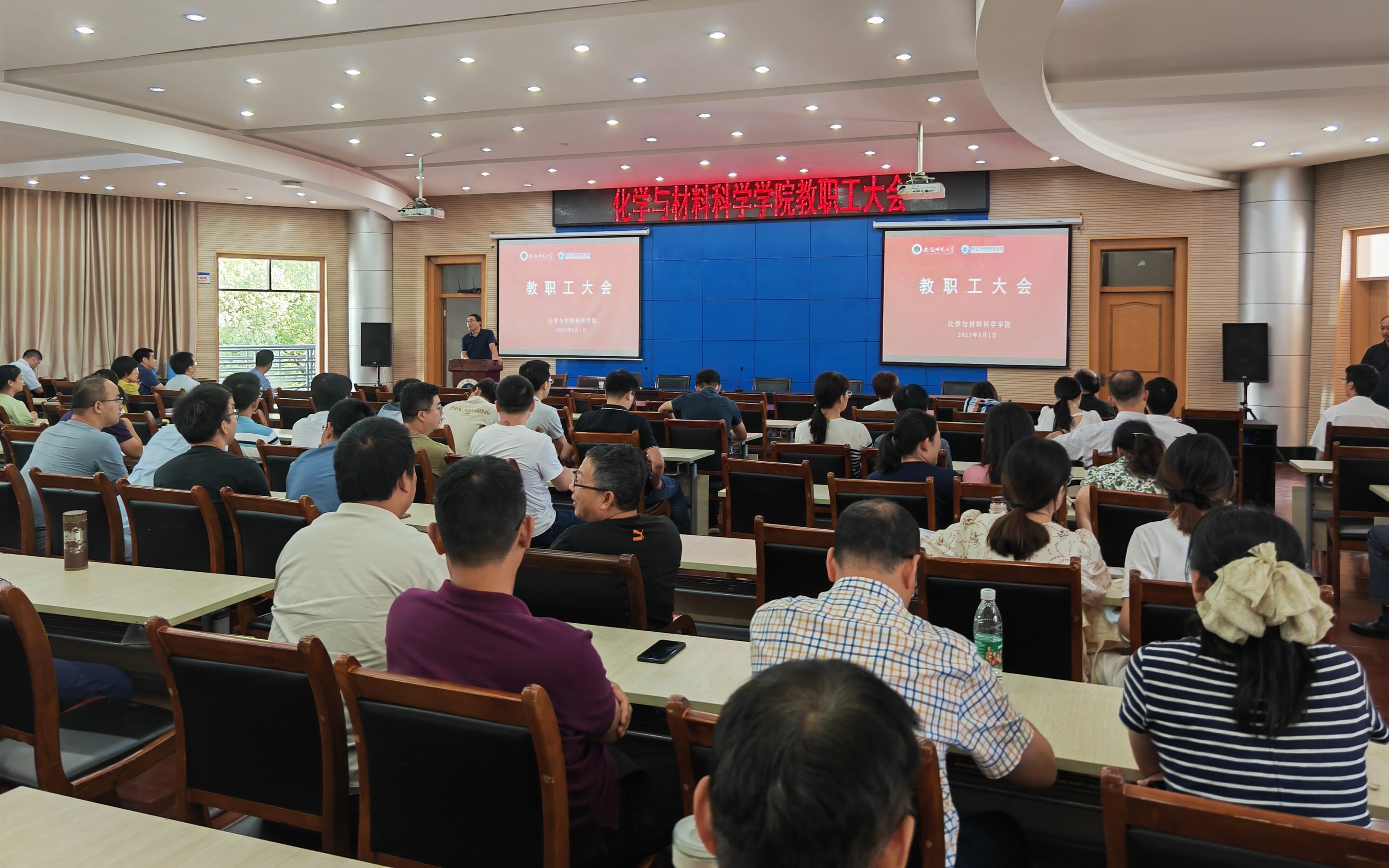 9月1日,美高梅4858线路登录召开新学期教职工大会,开展党风廉政建设暨师德师风专题教育宣讲,校人事处副处长梁齐军应邀作专题报告,学院全体教职工参加学习教育,会议由学院党委书记汪俊武主持。