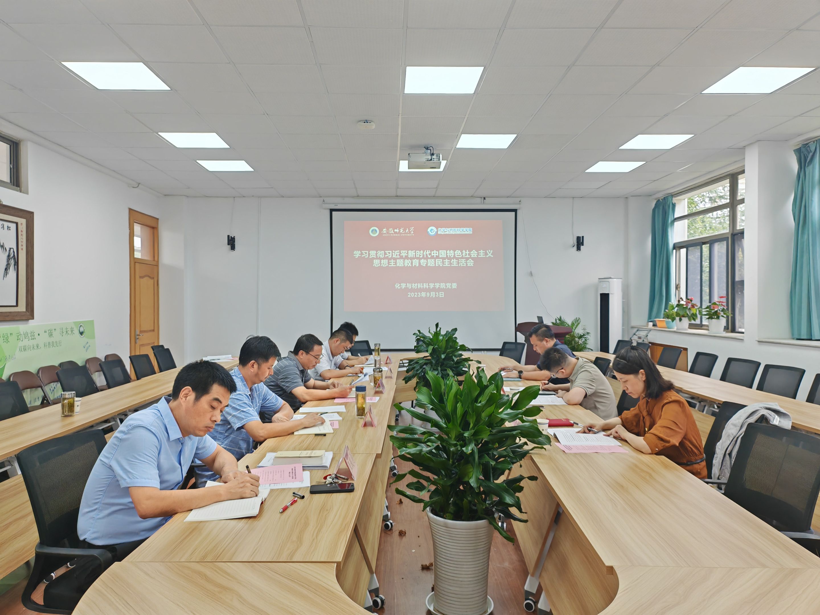 按照中央、省委统一部署和学校工作要求,9月3日下午,美高梅4858线路登录党委在学苑北楼9号楼205会议室召开学习贯彻习近平新时代中国特色社会主义思想主题教育专题民主生活会。校党委常委、副校长熊宇杰,校主题教育办公室综合组组长、党校常务副校长、党委组织部副部长余妍霞,校主题教育第二联络组副组长、物电学院党委副书记黄友生到会指导。会议由美高梅4858线路登录党委书记汪俊武主持。