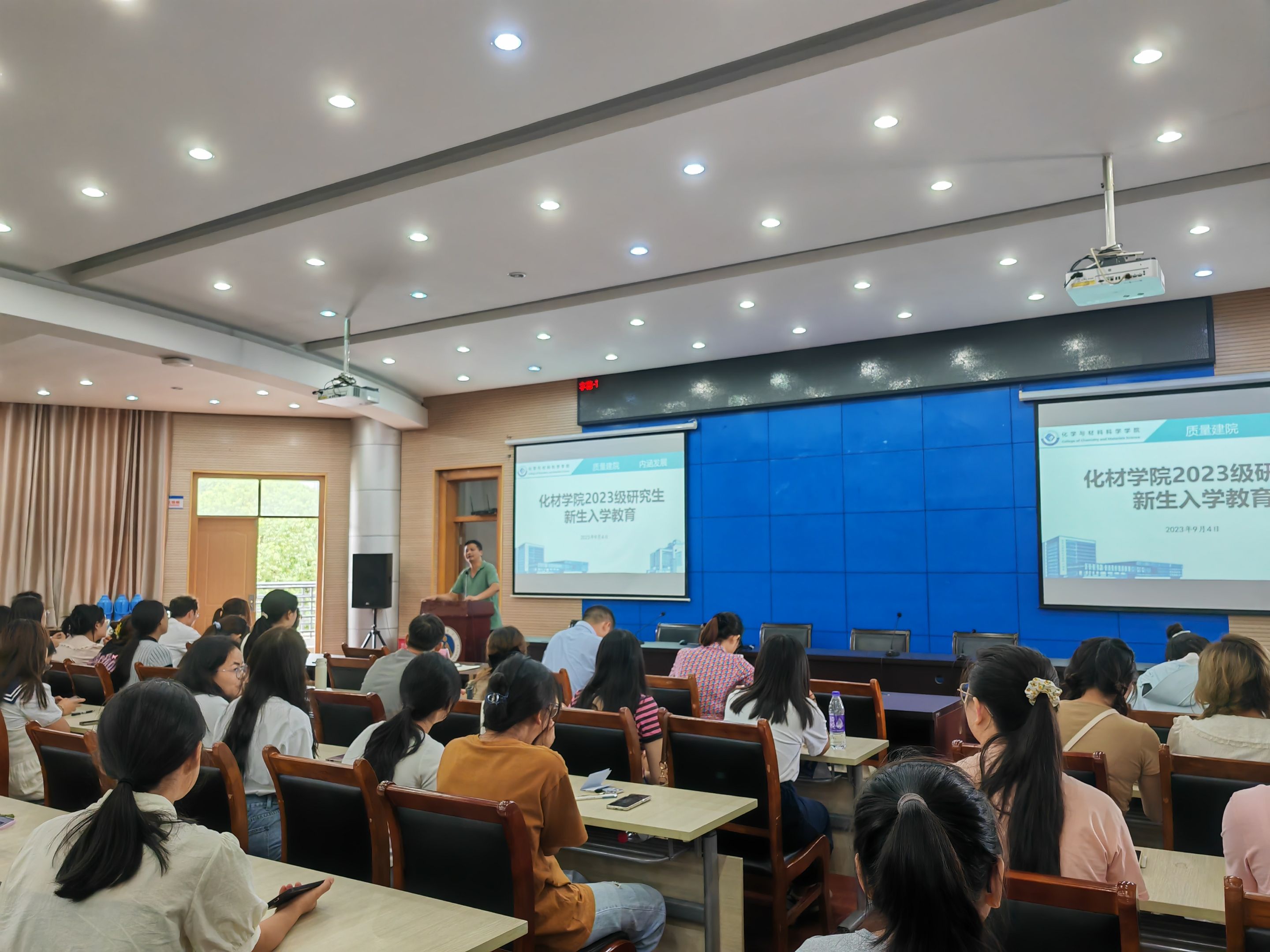 本网讯(美高梅4858线路登录 胡欣睿、张薇)为强化新生入学教育管理,帮助2023级研究生快速融入研究生生活,加强新生实验室安全意识,9月4日上午,美高梅4858线路登录于花津校区第三报告厅组织开展研究生新生入学教育。学院党委副书记李古州、副院长周双六、2023级研究生辅导员朱英贵、张薇及全体2023级研究生参加此次会议,会议由周双六主持。