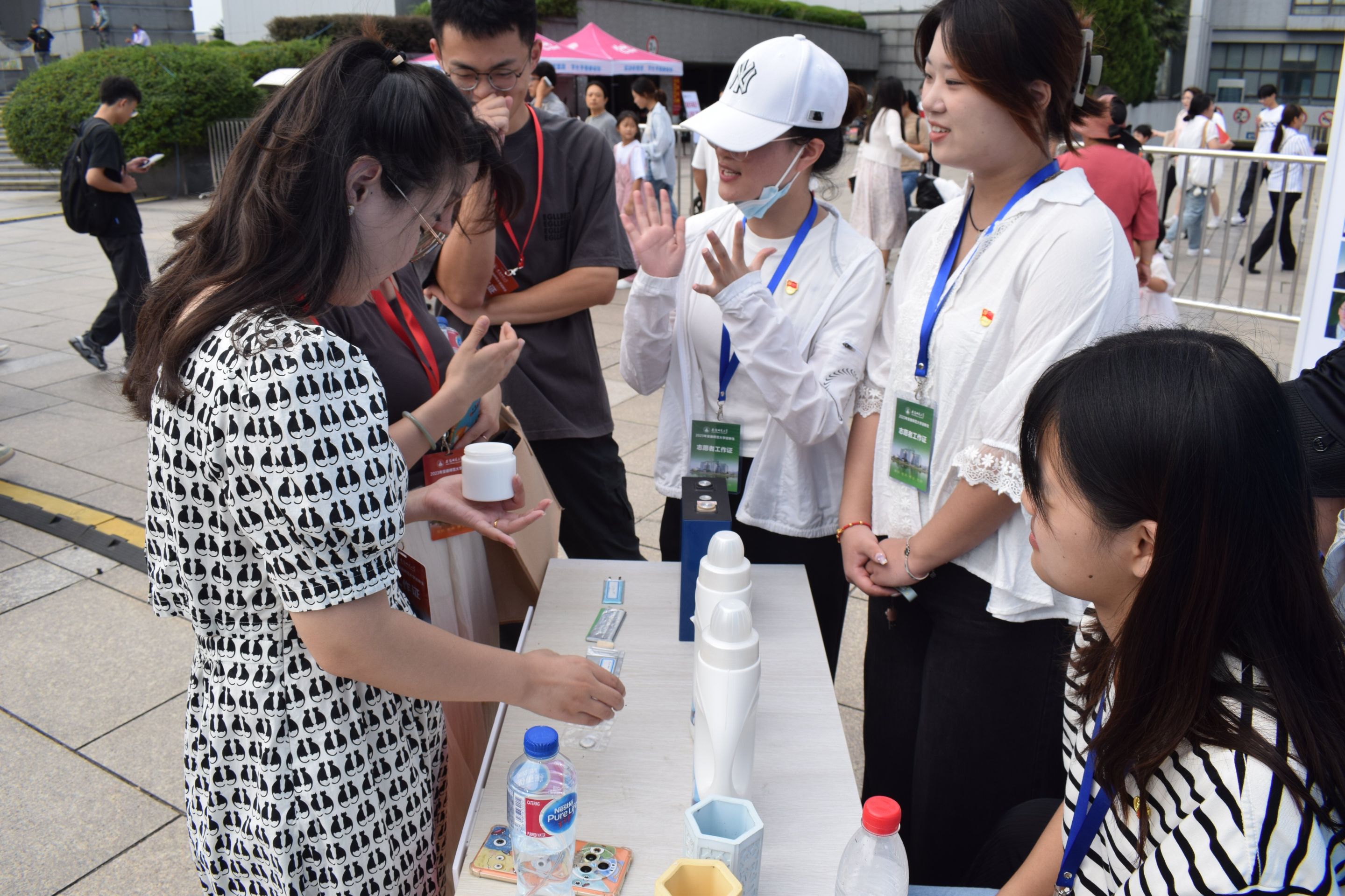 在迎新现场,美高梅4858线路登录传承迎新经典项目,努力为2023级新生上好大学“第一课”。实训作品展展示了环保笔筒、护肤霜、锂电池、留香洗衣液等一系列学生实习实训自制产品;新生礼品袋里定制笔记本、定制卡套、帆布包及环保杯,体现出学院老师、同学对新生的殷切关怀;志愿服务岗和党员先锋岗上高年级学生在志愿迎新工作中展现“化材人的样子”。