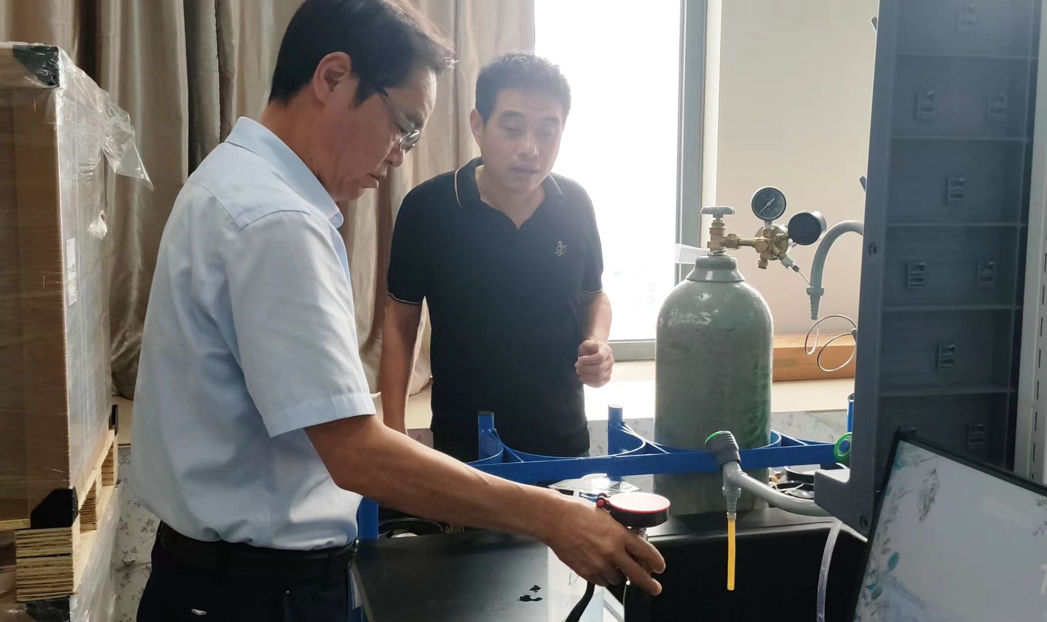 此次检查对照《高等学校实验室安全检查项目表(2023)》以及《美高梅4858线路登录实验室安全检查项目汇总表(红线20条)》要求,对实验场所卫生环境、水电设备、危险化学品安全、特种设备、高温设备、消防器材等开展了全方面检查,及时排查实验室存在的安全隐患。