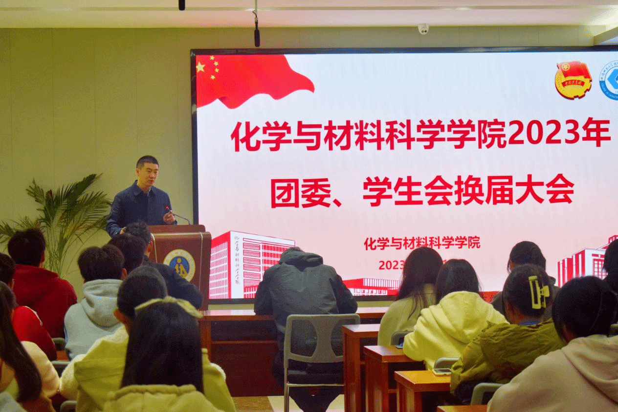 接力团学工作,连结学生情义。11月11日,换届大会在雄壮激昂的团歌中开始,领导老师分别为2022届团委、学生会工作人员颁发聘书,为新一届成员代表颁发工作证和工作记录本并合影留念。团委副书记(兼职)史若雨发表就职演讲,2023届学生会主席团成员丁刘灿带领本届团委、学生会全体成员进行庄严宣誓。李古州在讲话中指出,此次换届大会的召开为团委、学生会注入了新的活力,新时代的学生会要积极向党组织靠拢,增强政治性,以实际行动做到让青年学生满意,发挥好先锋模范带头作用,增强学生干部的先进性,更好的服务同学。