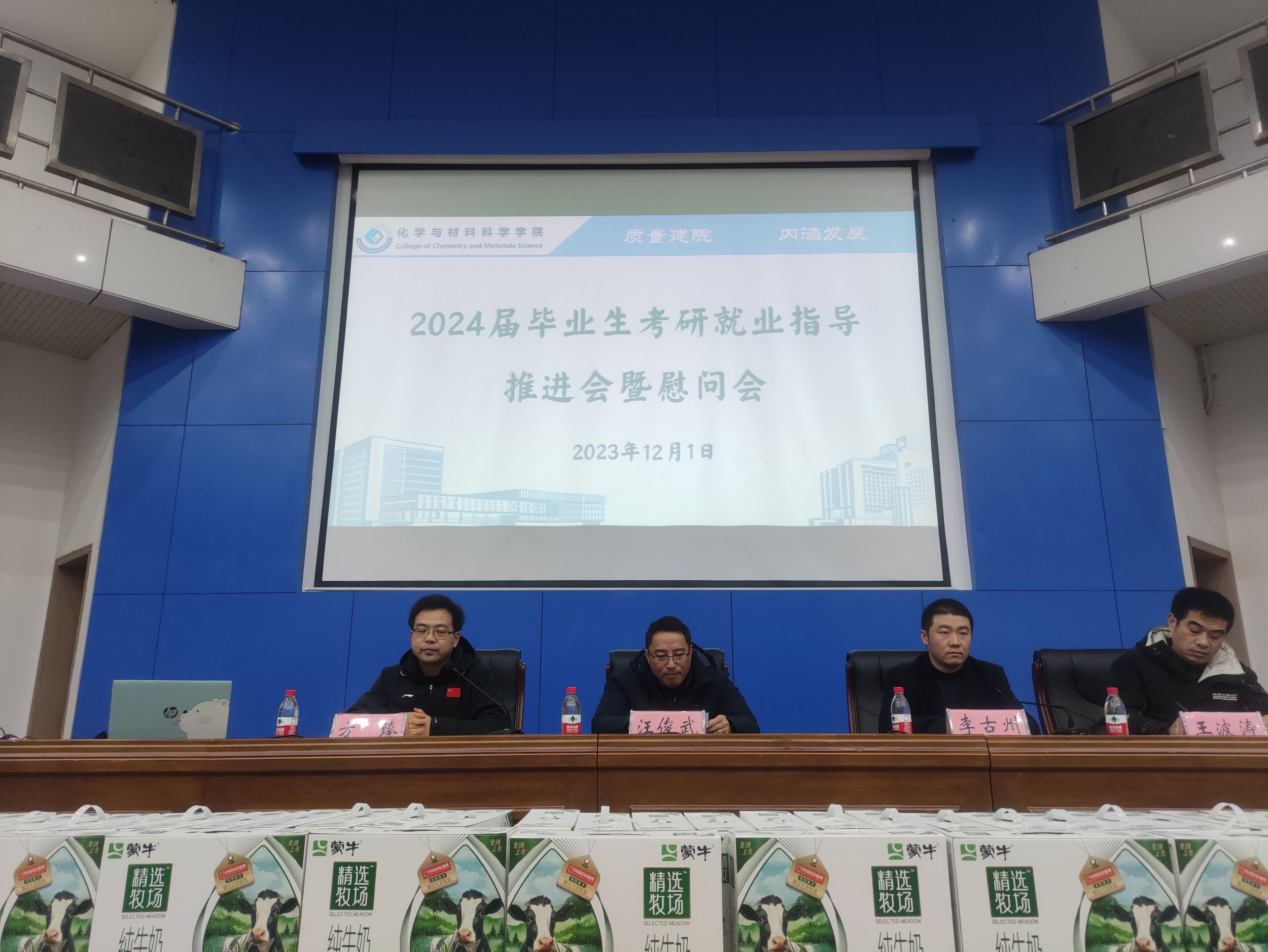 李古州分析了今年毕业生考研报考情况,希望广大考研的同学在当前冲刺的关键阶段,要强化自制力、坚持力和心理承受能力,以最佳状态应对战斗,最终突破重围,争取交上一份满意的答卷,考上理想的学校。同时,他就校园冬季安全、就业工作和征兵工作进行了强调,希望意向就业的同学积极行动,找到理想的工作,能够参军报国、实现梦想。方臻指出,考研重在坚持,要有始有终,注意调节,最后还要抓住重点。同时方院长表示:“同学们,你们尽管努力,你们的背后永远有我们为你保驾护航。”