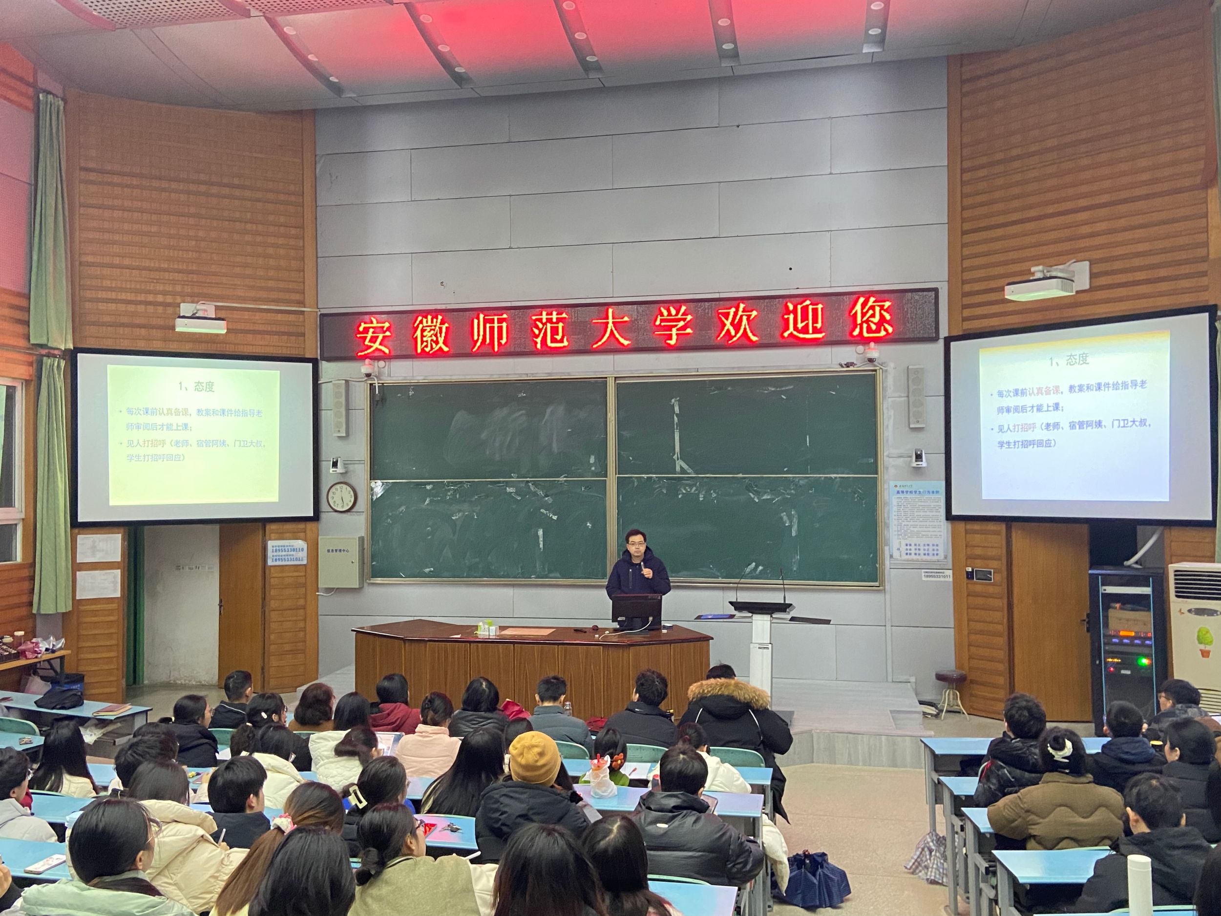 会议最后,辅导员陶勇老师就实习期间安全、请假的相关事宜进行了提醒和强调。此次实习动员大会,不仅使同学们了解了实习的意义与重要性,而且让同学们了解到实习过程中应遵守的纪律及事项。相信大家在接下来的实习过程中提升自身的实践能力以及分析问题和解决问题的能力,为成长为“金牌师范生”的道路奠定坚实的基础。