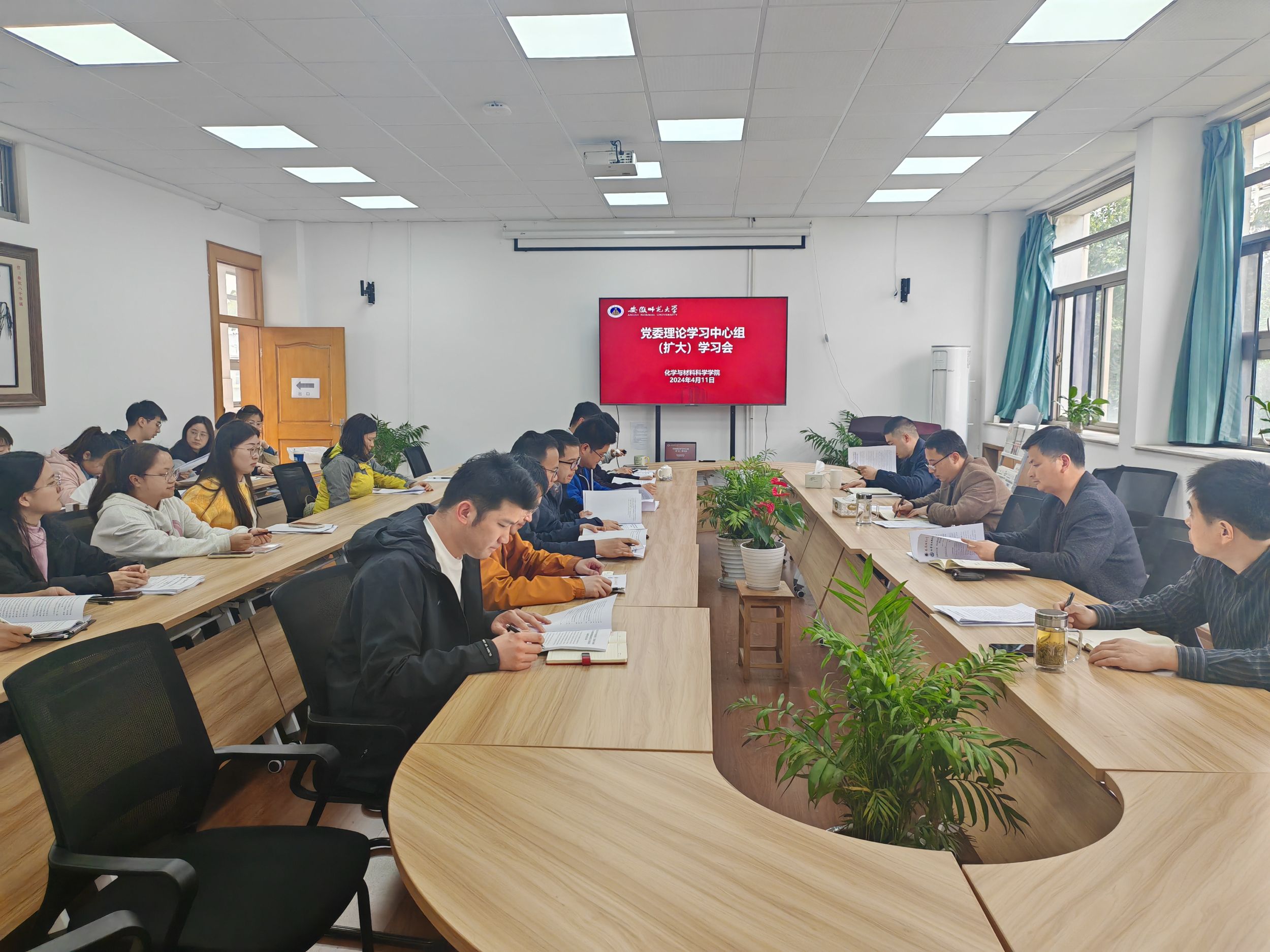 4月11日下午,美高梅4858线路登录党委在学苑北楼9号楼205会议室召开理论学习中心组(扩大)学习会,深入学习贯彻习近平总书记最新重要讲话和重要指示精神,专题学习全国两会精神,研究部署近期学院党建工作,学院党委委员、纪委委员、全体党支部书记参会。会议由学院党委书记汪俊武主持。