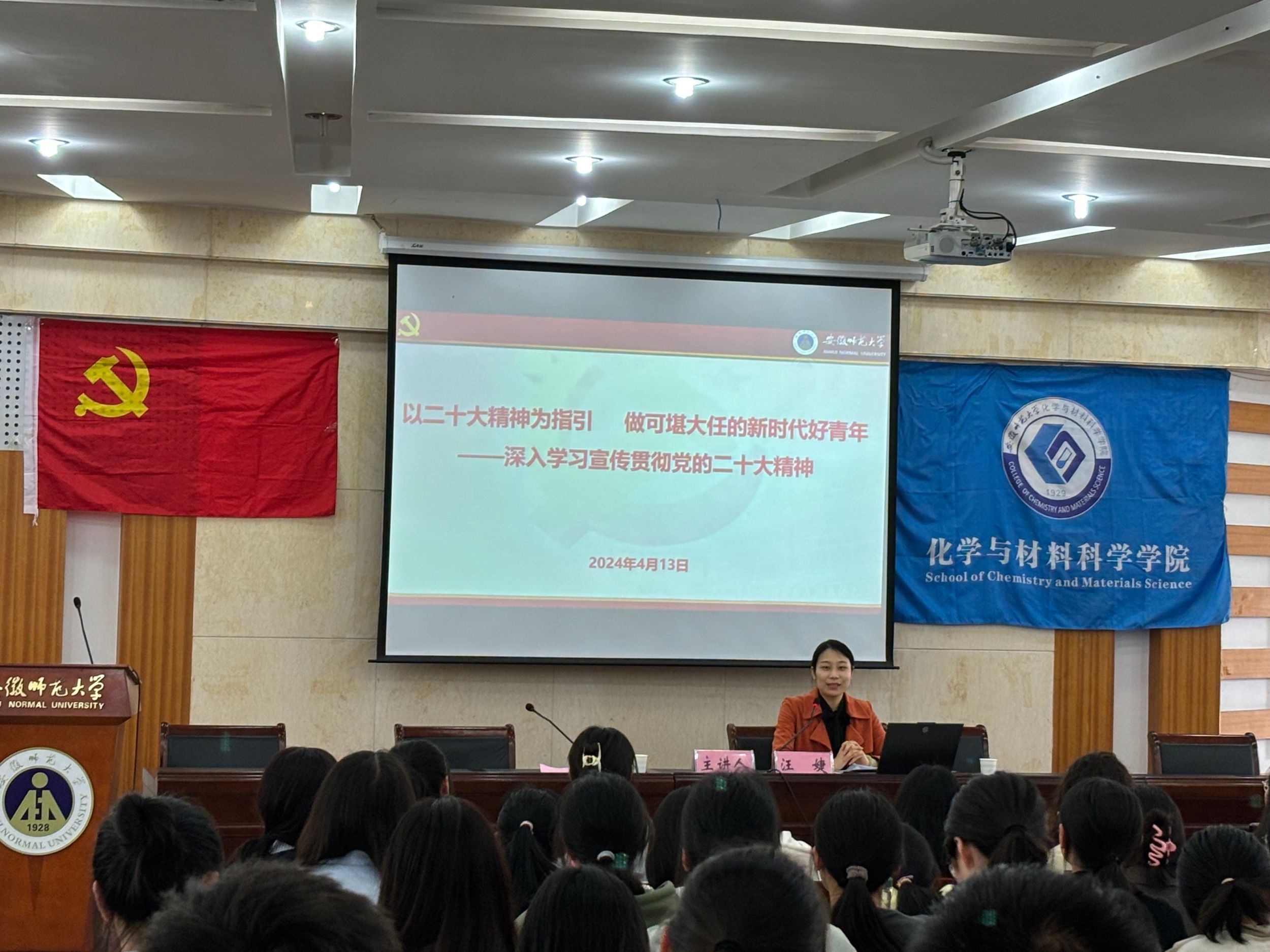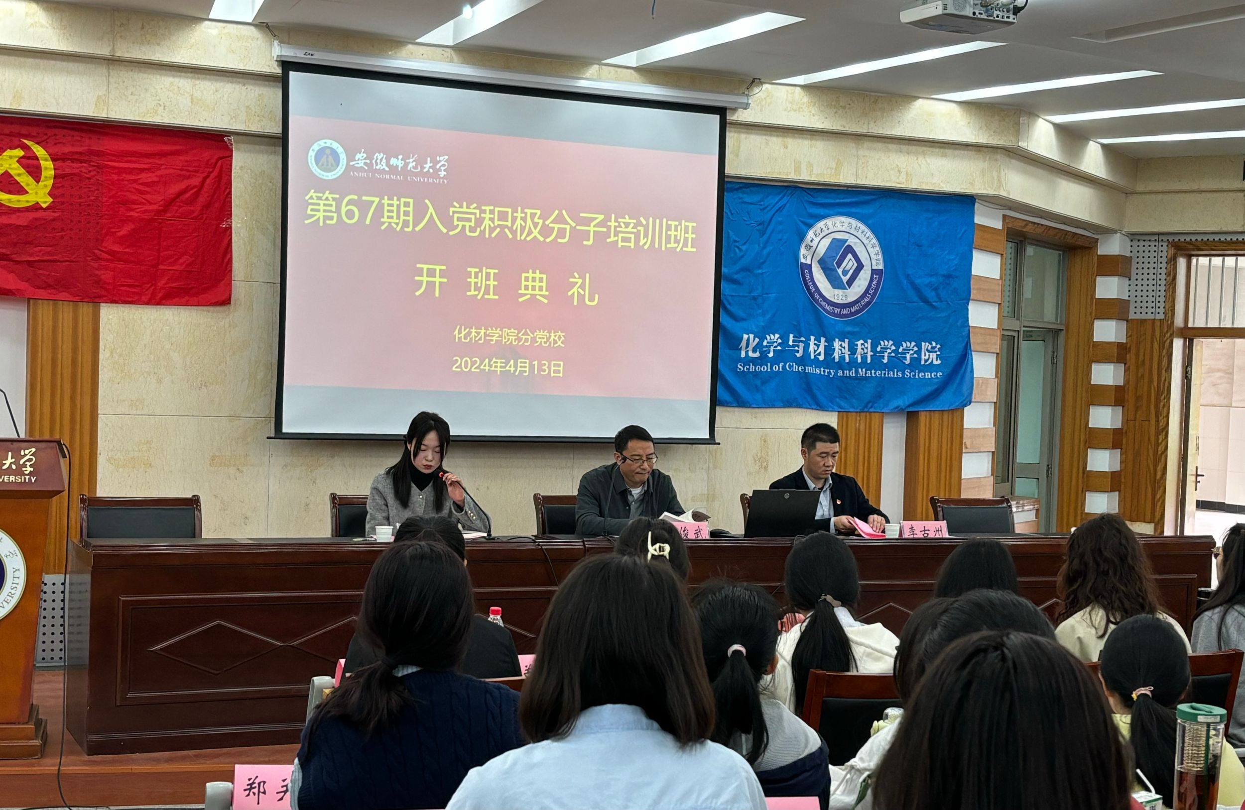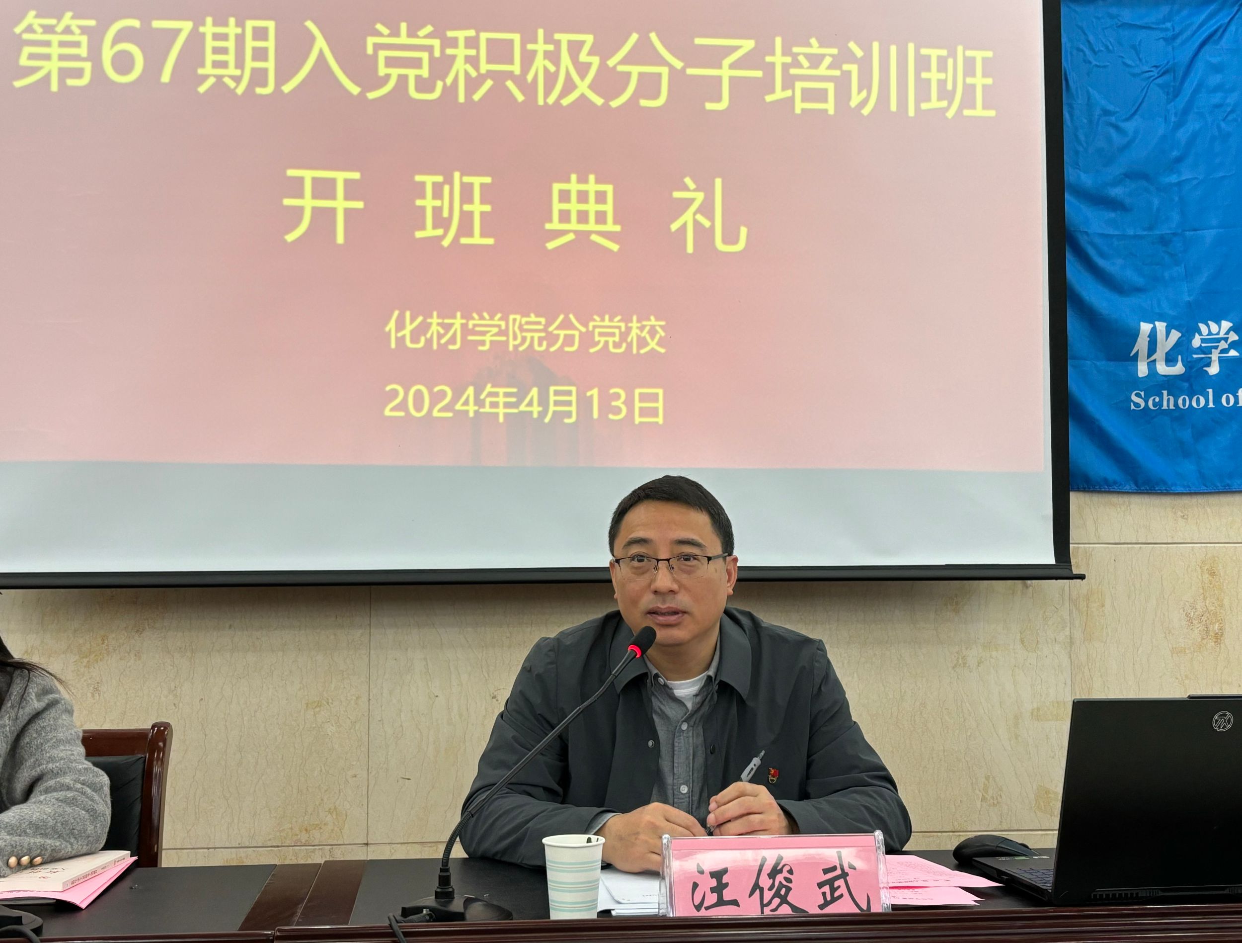 4月13日上午,培训班开班典礼在花津校区8号楼副2楼报告厅举办,美高梅4858线路登录党委书记汪俊武、党委副书记李古州、培训班班主任王霞及全体学员参与此次开班典礼。开班典礼上全体齐唱国歌,李古州宣读了培训班班委任命,王霞宣读了班级管理制度。2023级化学(师范)专业张岩作为学生代表发言,她结合自身实际表示要积极向党组织靠拢,顺应时代发展趋势,以实际行动贯彻落实党的二十大精神,为实现中华民族伟大复兴的中国梦贡献自身力量。汪俊武在动员讲话中强调本次培训的重要性,并对学员们提出了殷切期望,希望全体学员端正态度,明确自己的责任和使命,遵守纪律,准确理解党的理论知识,高质量完成本次培训学习。