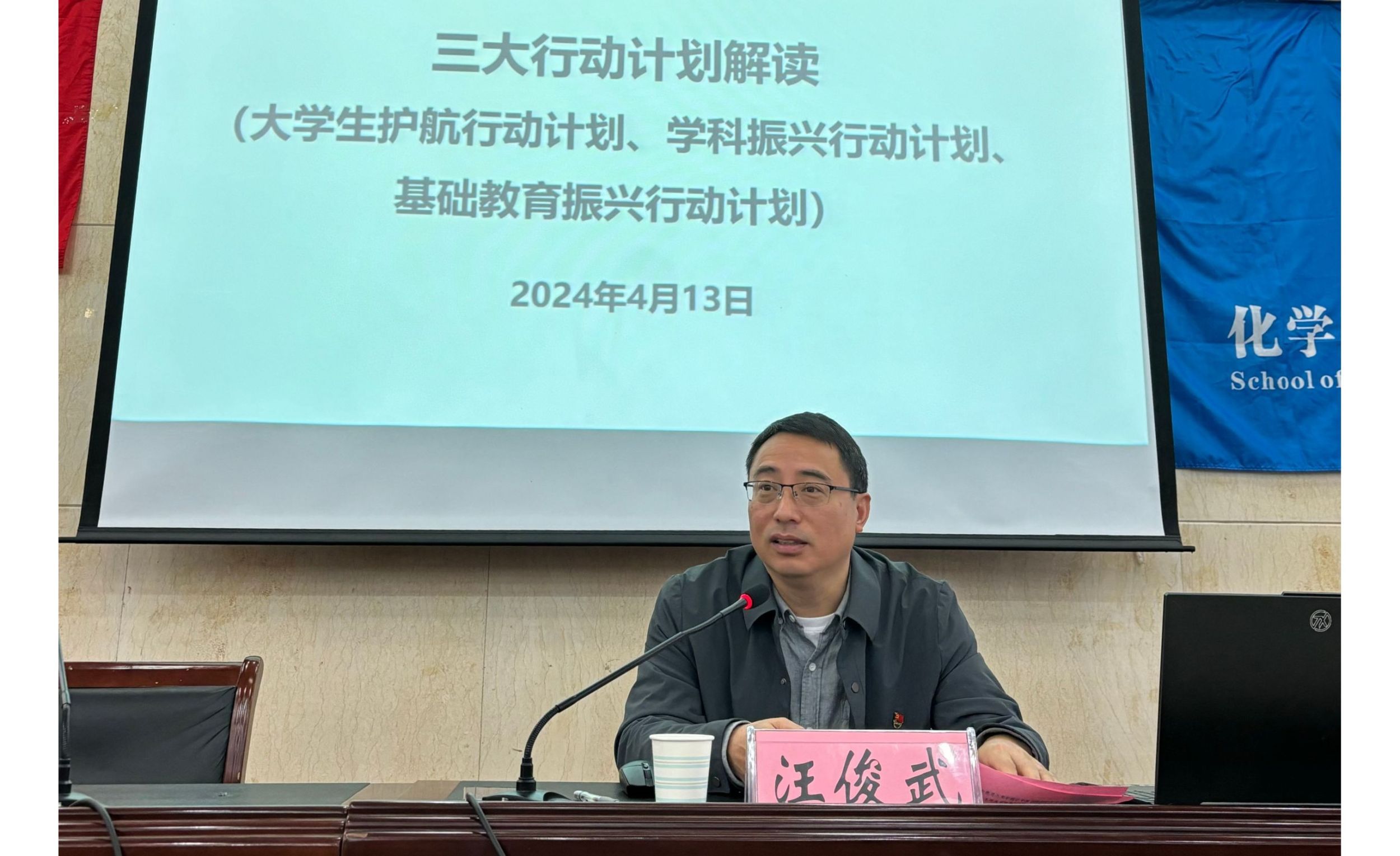 汪俊武以“学校‘三大行动计划’解读”为主题向全体学员讲授了第一课,他详细阐释了“三大行动计划”的具体内涵和深刻意义,并结合学院发展的实际情况,阐明了在学校推进“三大行动计划”、促进高质量发展的进程中,作为入党积极分子应如何躬身实践、为推动学院事业高质量发展作出青年学生的贡献。他强调全体学员应加强学习,清楚认识“三大行动计划”的具体目标任务;要发挥模范带头作用,当好宣传员,做好践行者。