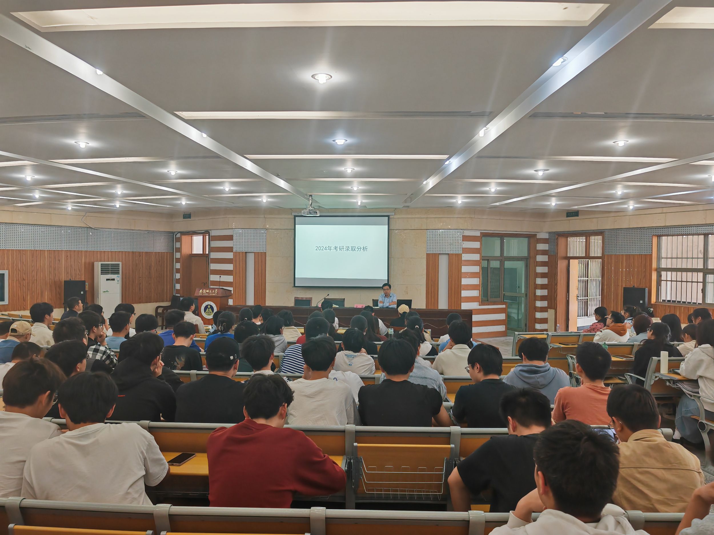 李古州分析了学院2024届本科生考研报考情况、考研备考、考试和复试期间学院所提供的管理服务保障情况,他从“为什么要报考、能不能报考、怎么去备考”三方面鼓励2021级同学做好清晰规划、全力以赴备战考研,择校时要明确自我定位,不要好高骛远;确定目标后就要坚定不移地走下去,制定适合自己的学习计划,不断完善自身,力争一战上岸,再创佳绩