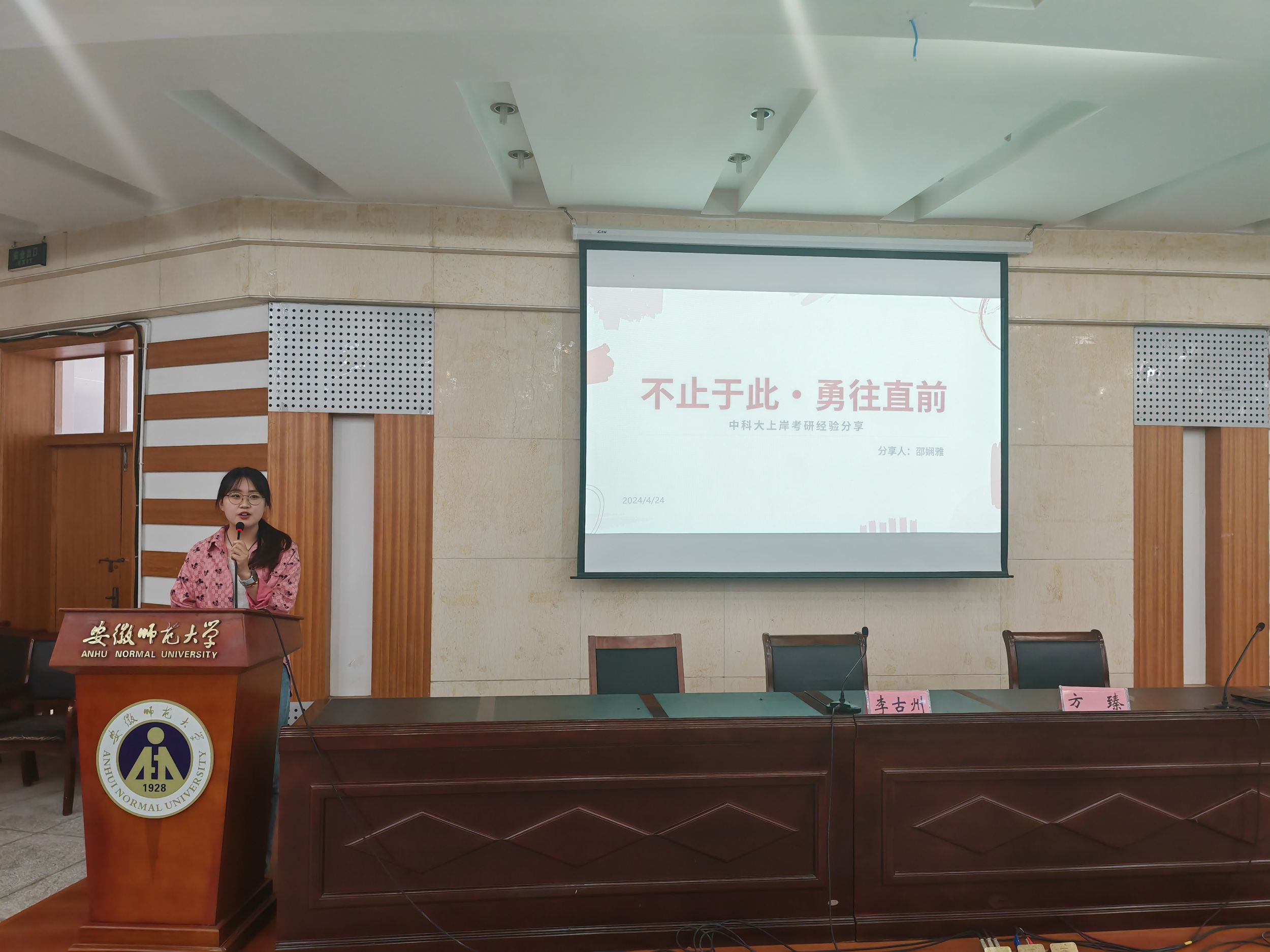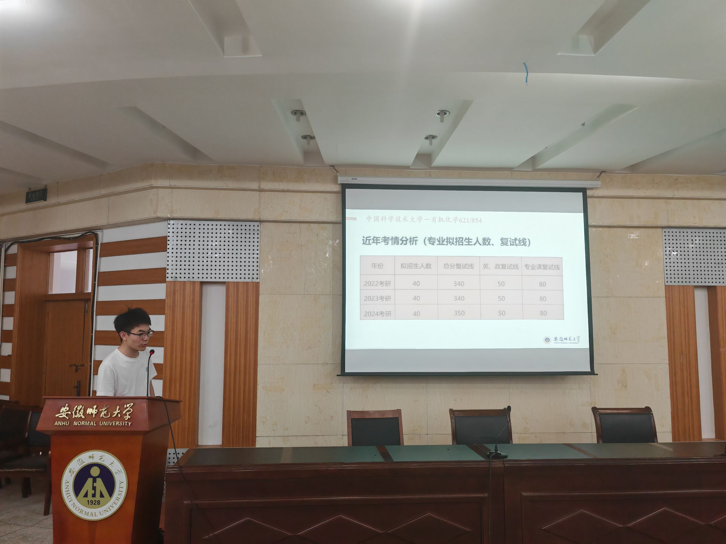 会上,方臻首先向同学们介绍了学院2024届毕业生考研院校情况,分析了录取专业、学校和地区等分布比例,向同学们提出了宝贵的择校经验。引导同学们多方面搜集信息、根据自身情况合理选择学校和专业,找准方向后努力前进,认真准备初试和复试,取得满意的答卷。