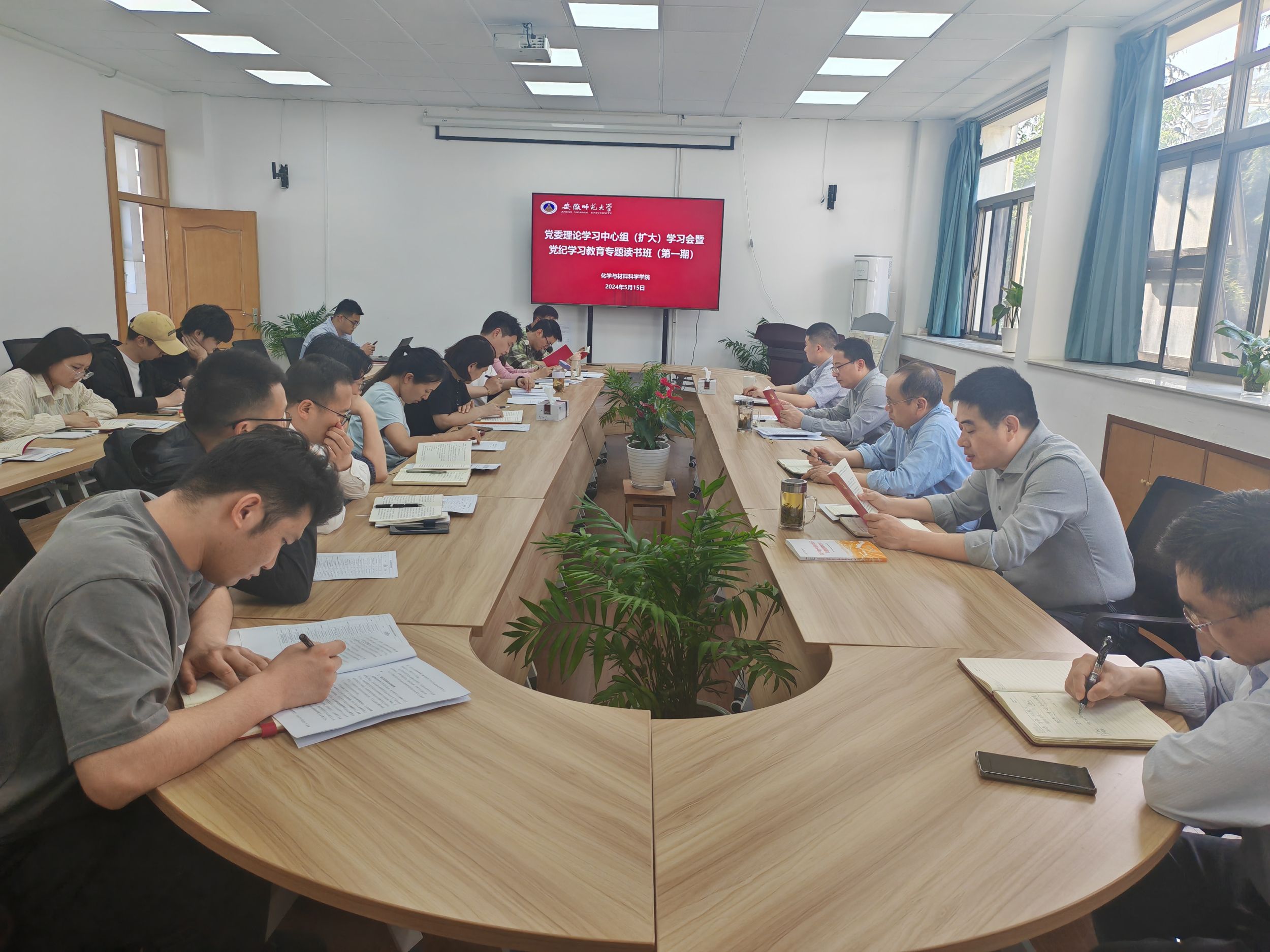 5月15日下午,美高梅4858线路登录在学苑北楼9号楼205会议室召开党委理论学习中心组(扩大)学习会暨党纪学习教育专题读书班,学院党委委员、纪委委员、全体党支部书记参加会议。院党委书记汪俊武主持会议。