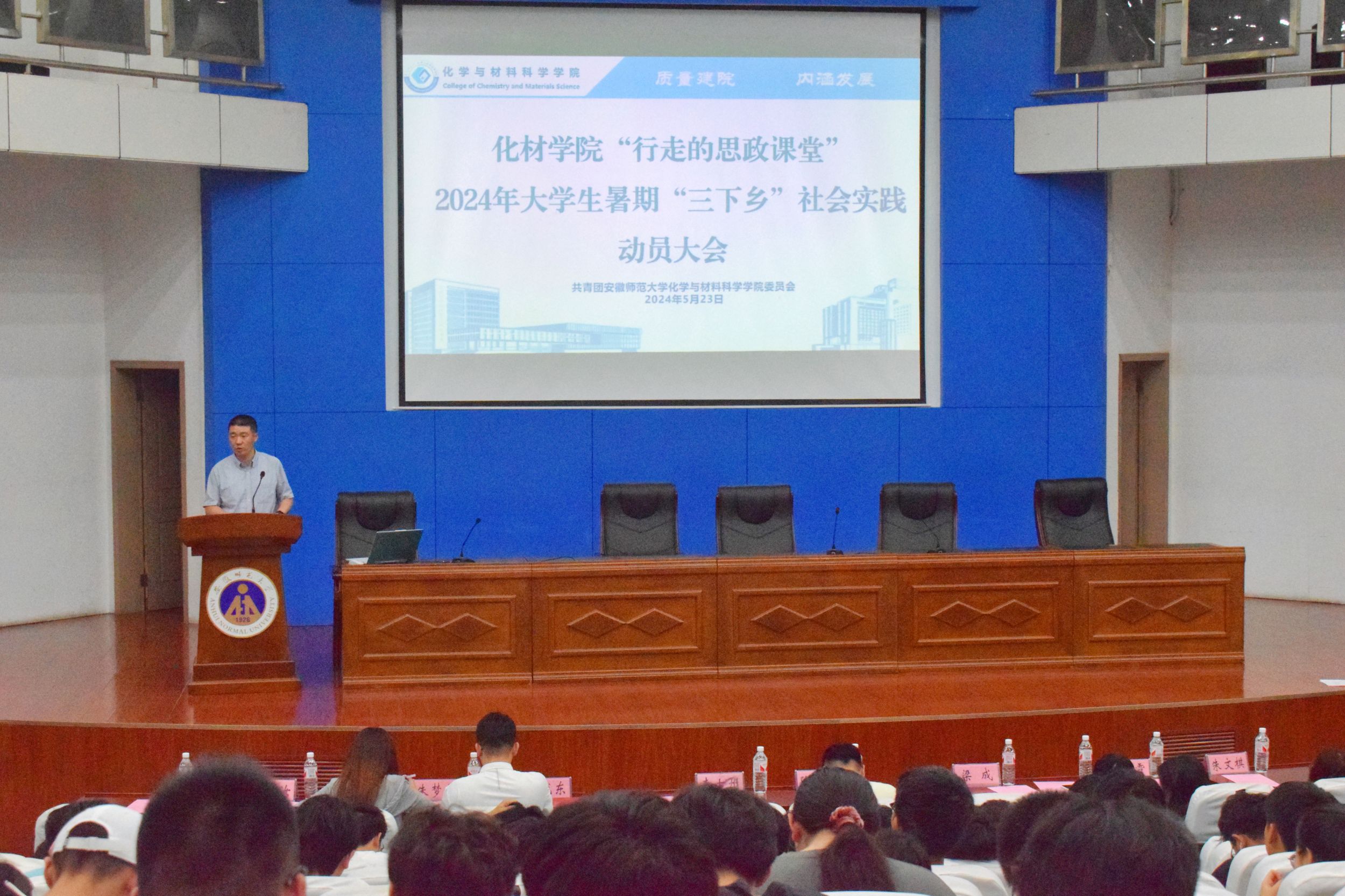 为进一步落实大学生护航行动计划,引导广大学生在暑期社会实践中受教育、长才干、作贡献、树形象,5月23日,美高梅4858线路登录在敬文图书馆报告厅厅举行2024年暑期“三下乡”社会实践动员会暨专题培训会。学院党委副书记李古州、团委书记梅冠东、团委副书记陶勇、2022级辅导员、2023级辅导员、2022级工科专业及化学非师范专业全体学生、2023级学生代表出席本次会议。本次会议由2023级化学师范专业周明月主持。
