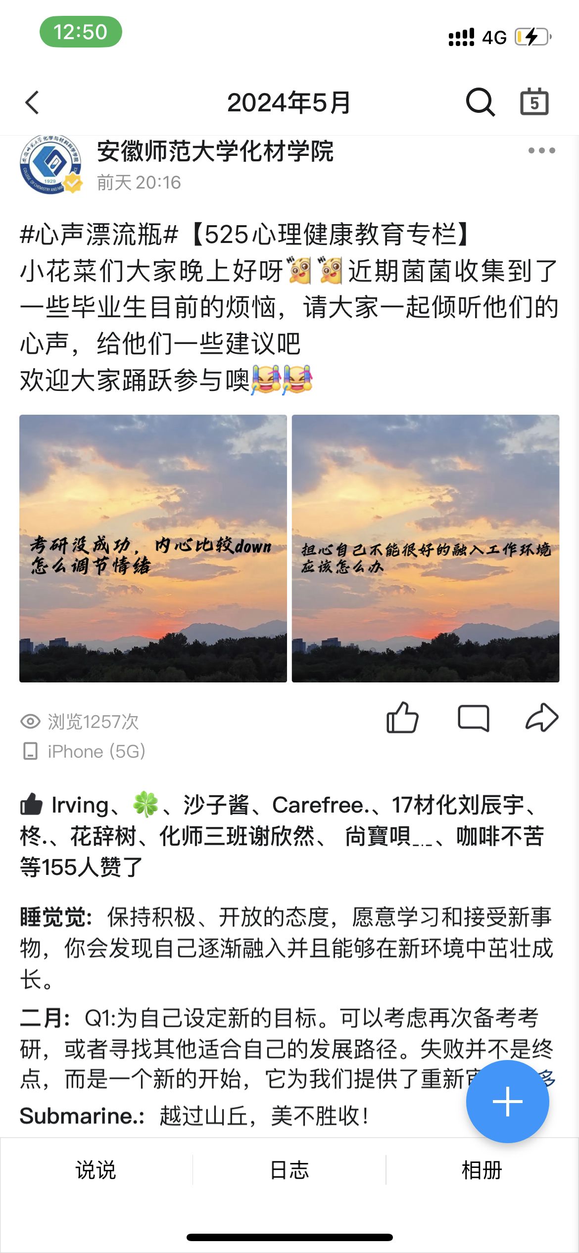 恰逢毕业季,为了解美高梅4858线路登录毕业生心理健康状况,解决他们对于求职就业以及升学等困惑,特开展“心声漂流瓶”活动。将他们的烦恼以匿名方式发布在本院官方平台,并邀请本院其他学生从不同角度去回答他们的困惑,帮助他们解决目前的迷惘,消除内耗情绪。