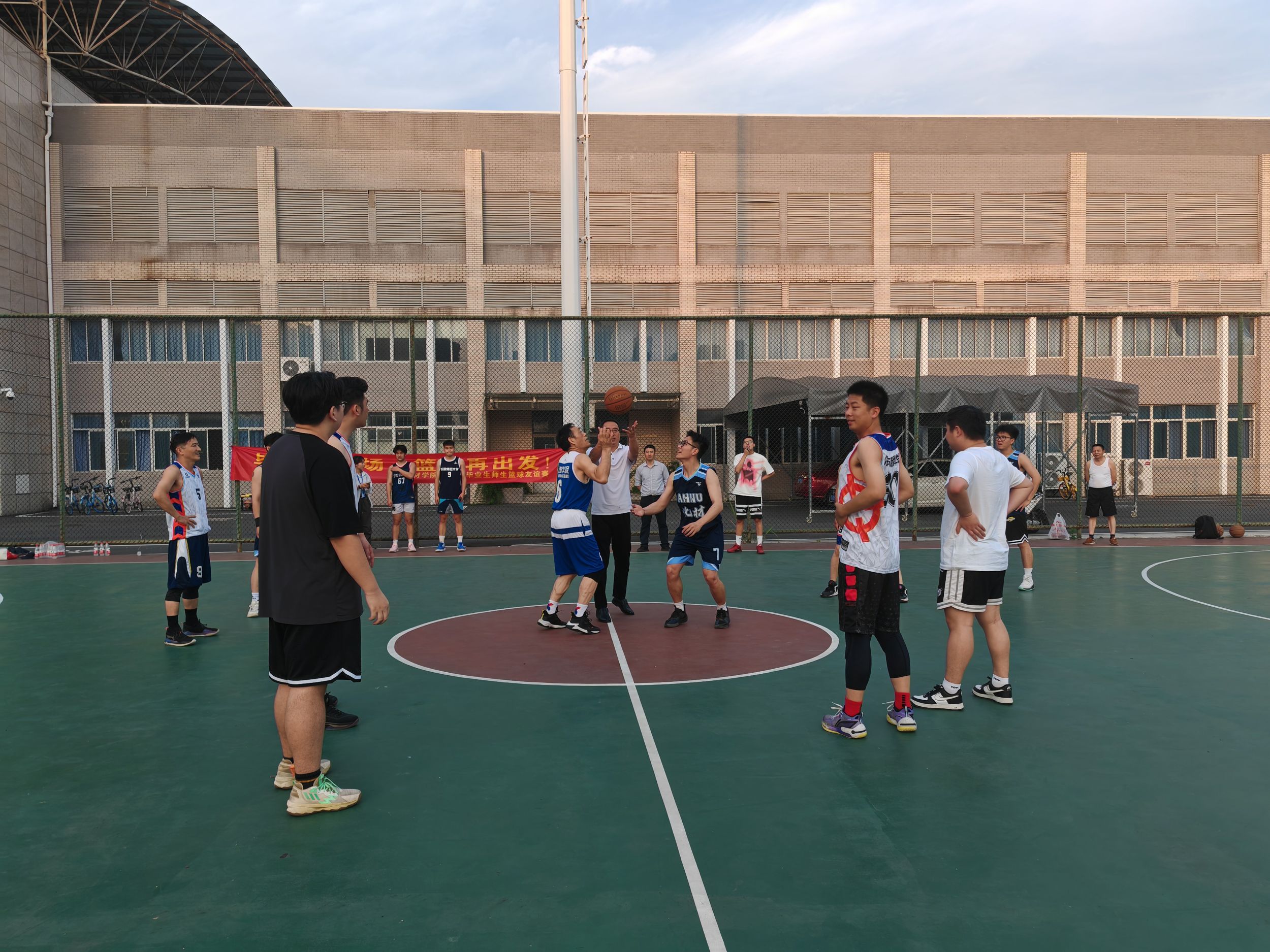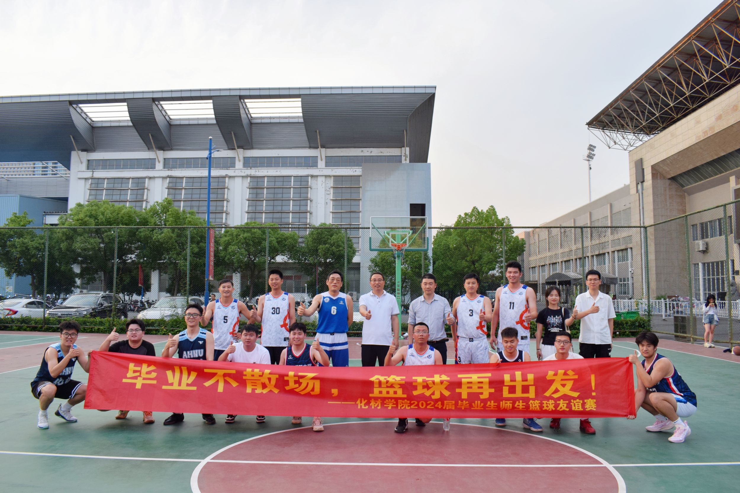 6月3日,美高梅4858线路登录在花津校区北侧篮球场举行欢送毕业生师生篮球友谊赛,美高梅4858线路登录党委书记汪俊武、副书记李古州、教职工篮球队、毕业班辅导员、学生代表参加活动。