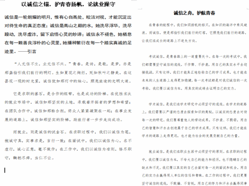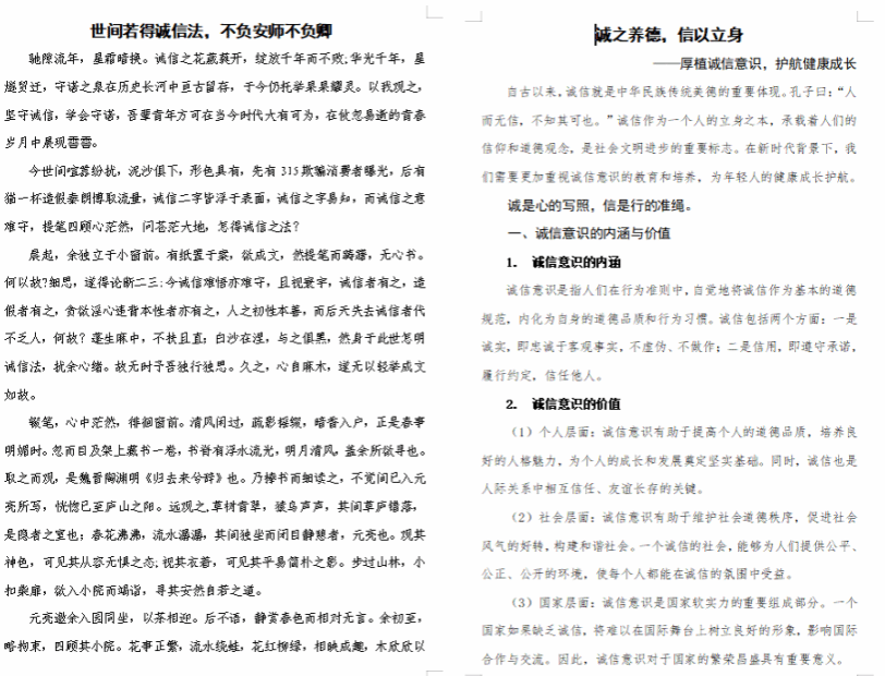 主题征文,厚植诚信意识。为进一步巩固和深化美高梅4858线路登录诚信教育成果,引导青年学生讲诚信、树诚信、践诚信,培养新时代大学生诚信品质,弘扬诚信文化,推动诚信社会建设,美高梅4858线路登录面向全体学生开展了2024年度诚信主题征文活动,各年级学生围绕考试诚信、学术诚信、就业诚信、还贷诚信等主题撰写自己的青春奋斗故事,累计参与80余人次。通过此次活动,形成 “诚信做学生,营造新风貌”的浓厚氛围,为美高梅4858线路登录培养德才兼备的优秀人才铺设基础。