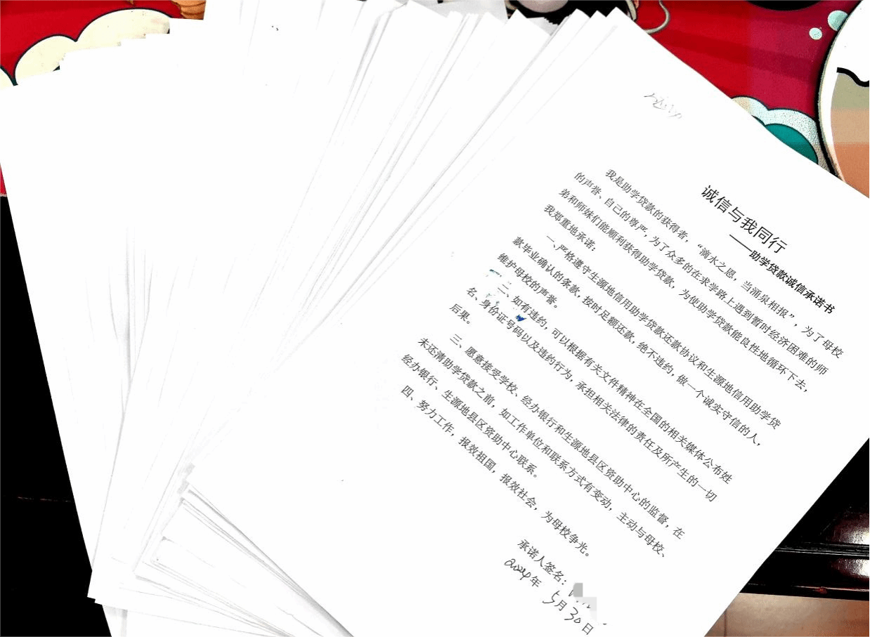 诚实守信,履约践行诺言。为引导毕业生牢固树立信用意识,强化学生诚信意识,切实履行还款义务,2024届毕业班辅导员召开毕业生“感恩助学 诚信还款”主题班会,各毕业班辅导员详细地介绍了助学贷款的相关政策,并着重强调了诚信还款的重要性,阐释了助学贷款的还款政策和相关规定,包括还款方式、还款期限、逾期罚息等内容。通过具体案例,向同学们展示了逾期还款可能带来的严重后果,如信用记录受损、影响未来贷款和就业等,认真细致的指导毕业生完成还贷工作。