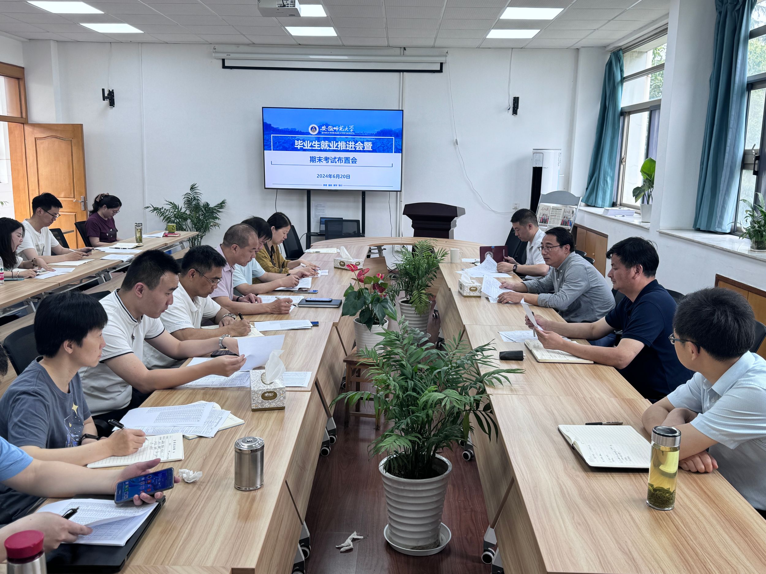 李古州传达了学校近期工作的会议精神,通报了学院当前就业落实率数据,要求重点落实、层层负责、强化跟踪、抓好帮扶等工作措施。2024届毕业班辅导员分别就各班级未就业学生情况、暂缓毕业学生情况及“一生一策”帮扶措施等进行了汇报,与会人员就重点学生护航进行了研判。院团委书记梅冠东汇报了暑期社会实践立项情况和初步安排,梁成解读了2024年暑期学生留校工作实施方案,王霞汇报了近期毕业班文明离校安全工作,陶勇汇报了新学年贫困生认定工作,教学秘书苏桂琴解读了期末考试和暑期小学期相关工作安排,会议就期末考试考风考纪及学风建设进行了重点部署。