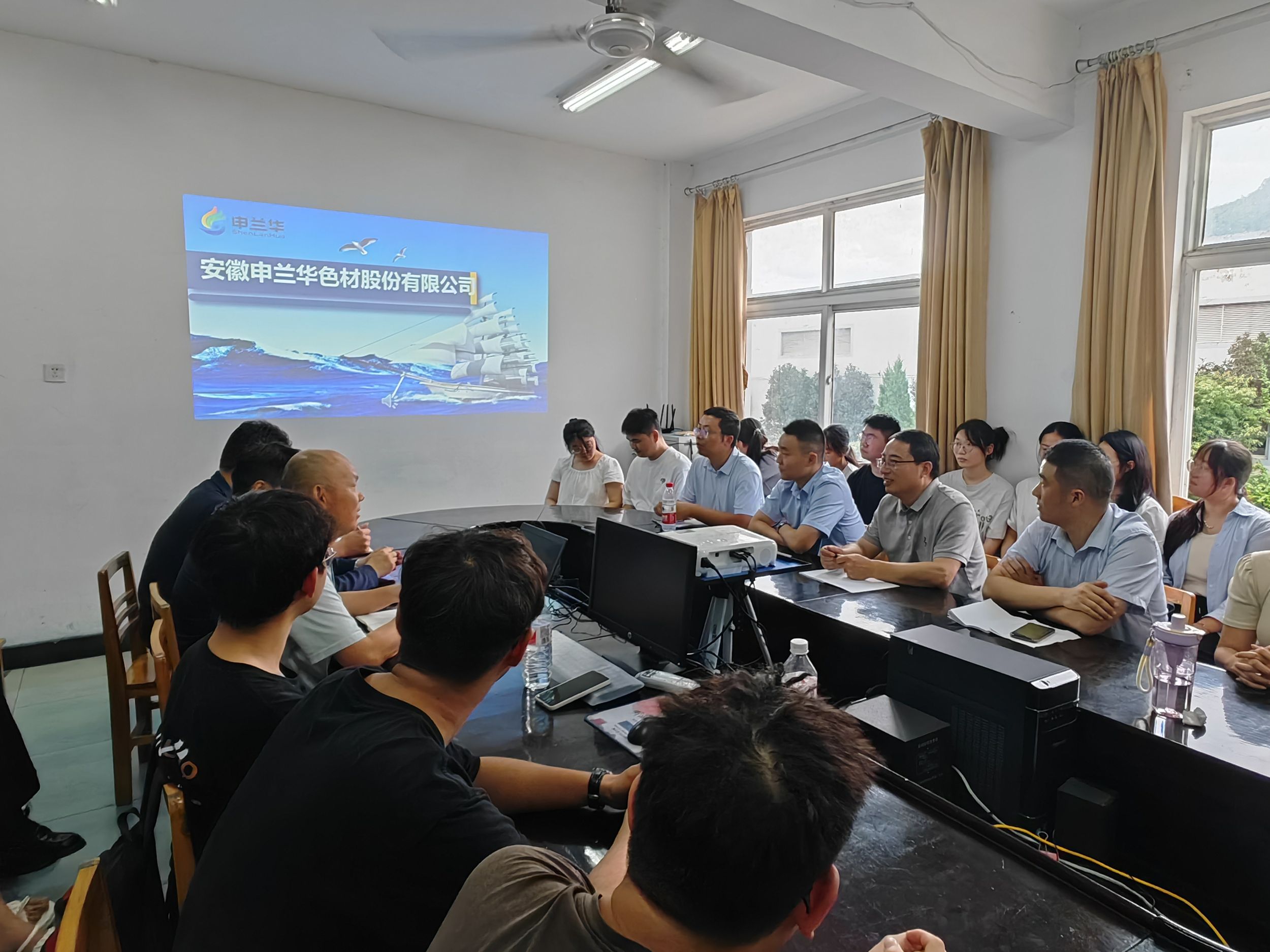 随后,汪俊武一行来到安徽申兰华色材股份有限公司慰问专业实习师生。安徽申兰华色材股份有限公司质管部部长徐再汉详细介绍了公司发展历程和今年来取得的成绩,人事部部长刘春华介绍了实习学生下公司实习岗位安排情况。实习学生龚娟表示,在公司师傅的悉心指导下,逐渐了解了水性油墨的各项检测指标,包括挥发性、粘度、密度、pH值等,通过实际操作,学会了使用平磨仪将滤饼和润滑油混合均匀,更好的刮涂布卡,硬纸卡等相关操作,将珍惜这段宝贵的实习经历,继续努力学习、不断进步,为成为一名优秀的专业人才而努力奋斗。汪俊武向公司为安徽师范大学美高梅4858线路登录的同学提供实习机会表达了感谢,同时对学院专业分类和教学项目计划做了详细的介绍。他表示,希望同学们能够珍惜实习机会,把理论学习和专业实践紧密结合到一起,同时通过课题研究、专业实习、企业参观等多种形式,进一步加强学院与企业的紧密联系,提高人才培养质量。