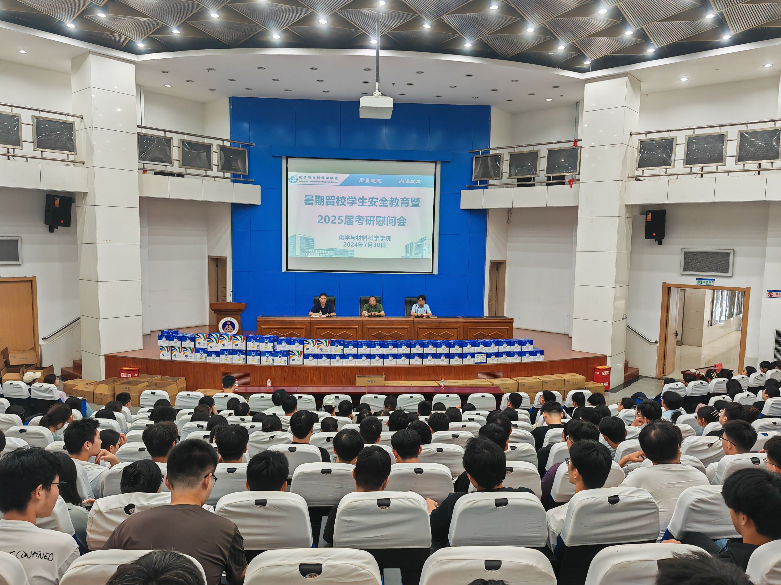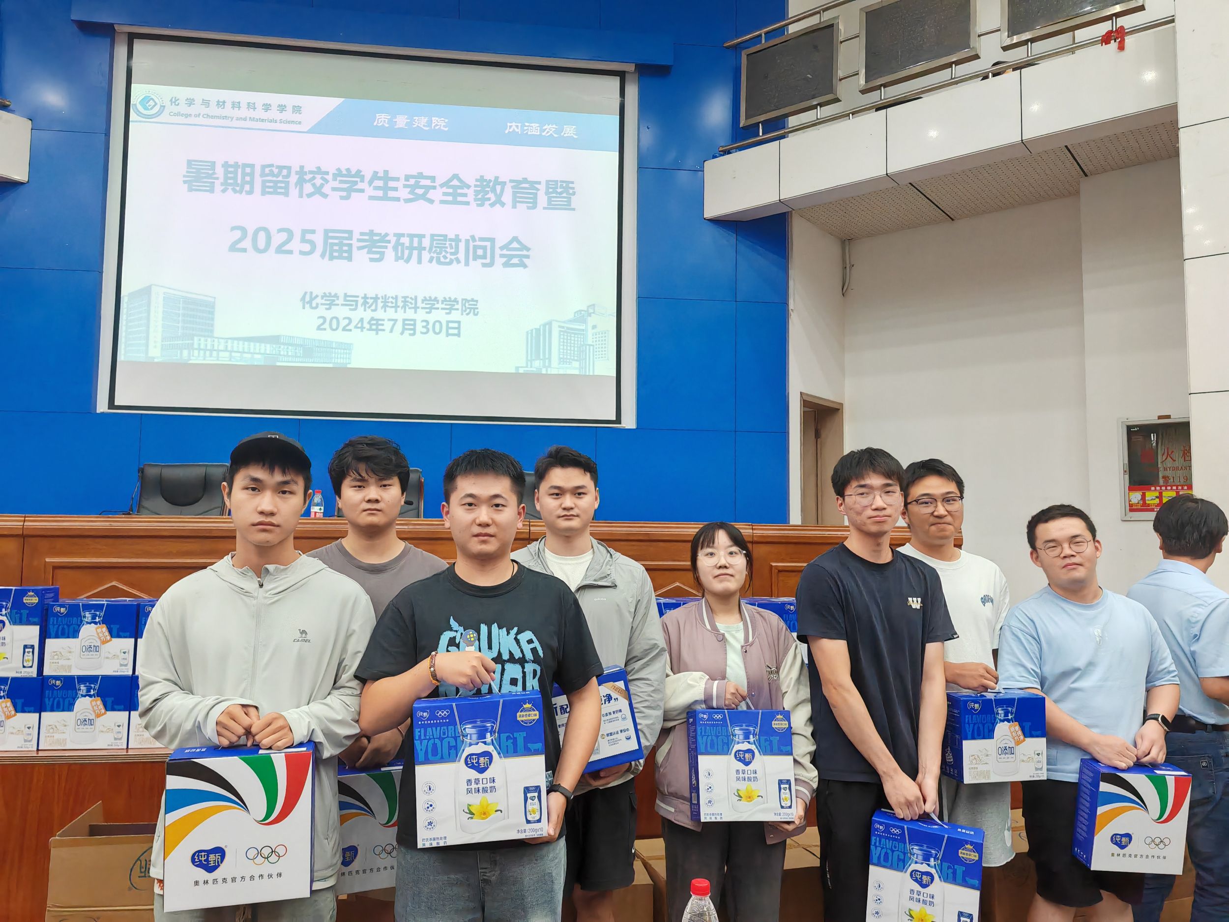 本网讯(美高梅4858线路登录 陶勇)为了深入贯彻大学生护航行动计划,了解暑期考研留校学生的思想、学习和生活状况,切实做好留校学生的安全管理和教育服务工作,7月30日下午,美高梅4858线路登录在敬文图书馆报告厅举行了暑期留校学生安全教育暨2025届考研慰问会,院党委书记汪俊武,副院长崔鹏,辅导员陶勇、梅冠东共同出席了慰问活动,为暑期备战考研留校学生送去了温暖与关怀。会议由党委副书记李古州主持。
