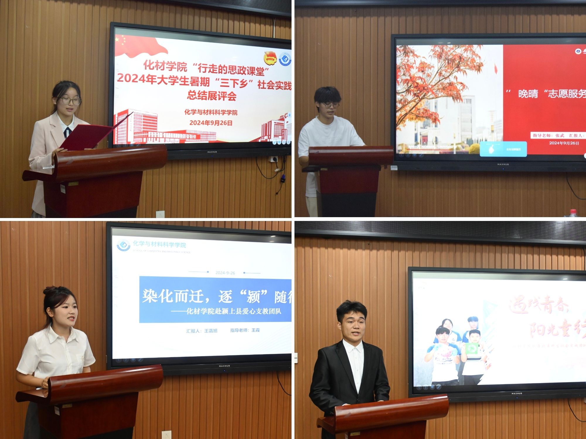 为深入学习贯彻党的二十届三中全会精神,积极引导青年学生在社会实践中开阔视野、增长才干、提高实践能力与团队协作能力。9月26日,美高梅4858线路登录于礼勤楼702会议室举举办“行走的思政课堂”2024年大学生“三下乡”暑期社会实践成果展评会。美高梅4858线路登录党委副书记李古州、团委书记梅冠东、团委副书记王霞、全体专兼职辅导员、2024年暑期社会实践团队代表,以及2023级、2024级各班级学生代表参会。展评会由2023级应用化学专业茅宇鑫同学主持。