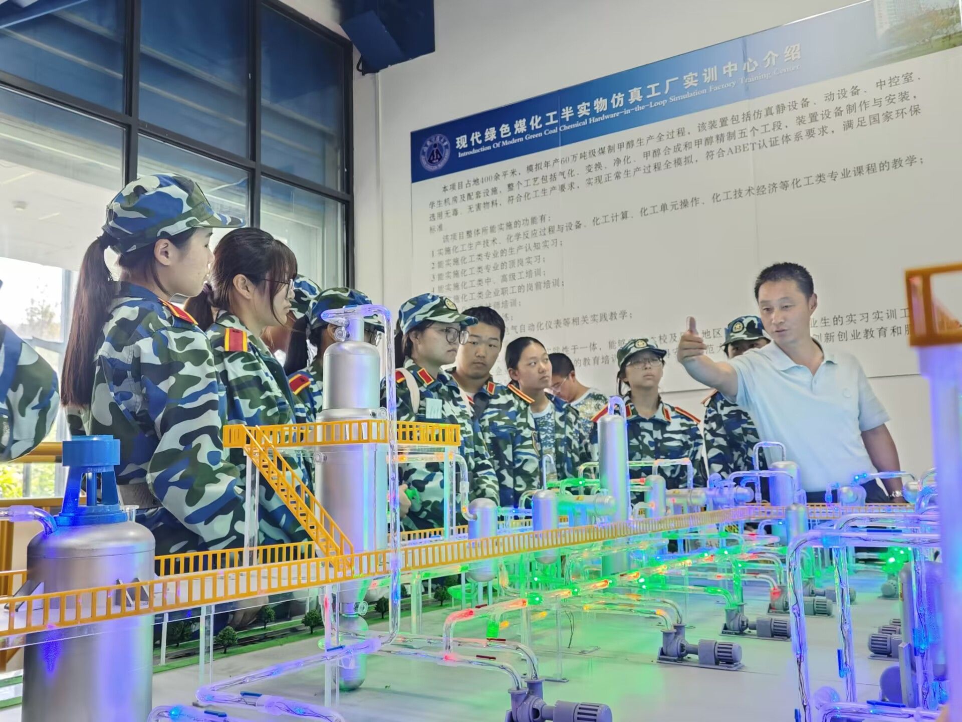 此前在新生军训期间,学院组织各专业新生深入工科实训中心参观,在煤气化装置的核心区域听取了关于煤气化技术的详细讲解,让学生们对煤气化过程的复杂性有了更为深刻的理解。在甲醇合成反应区,老师们通过仿真工厂向学生们详细剖析了甲醇合成的化学原理,学生们还亲身体验了工厂先进的控制系统。在参观过程中,学生们还就煤制甲醇工艺中的技术难点、行业发展趋势以及未来研究方向与仿真工厂技术人员进行了深入的交流。结束后,同学们表示这次探访不仅拓宽了他们的专业视野,还为他们未来的学术研究提供了宝贵的经验,并决心将所学知识融入日后的学习和工作中,为推动我国煤化工行业的科技进步和可持续发展贡献自己的力量。