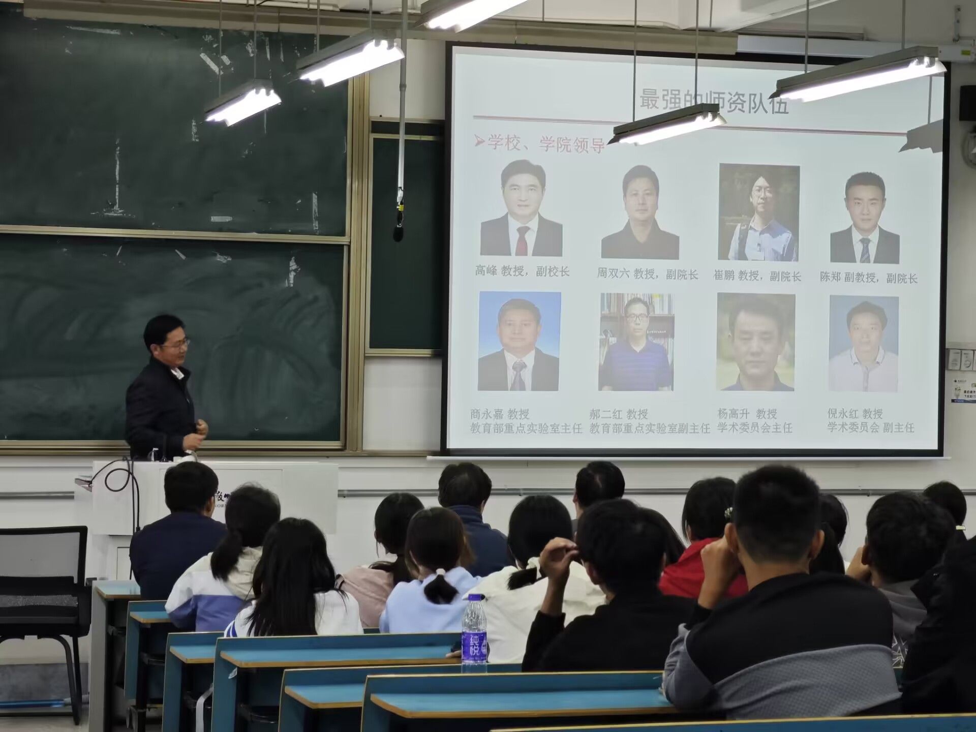 各系主任向同学们介绍学院历史、师资队伍、人才培养、学科建设实验设备和招生情况,并通过客观数据分析学院的学科平台建设发展、教育教学成果、科学研究项目、丰硕的育人成果等。各位老师强调大学并不是舒适区,不能就此松懈,要怀揣目标,有拼搏干劲。“雄关漫道真如铁,而今迈步从头越。”老师们勉励新生们刻苦钻研,脚踏实地,展望大学生活。