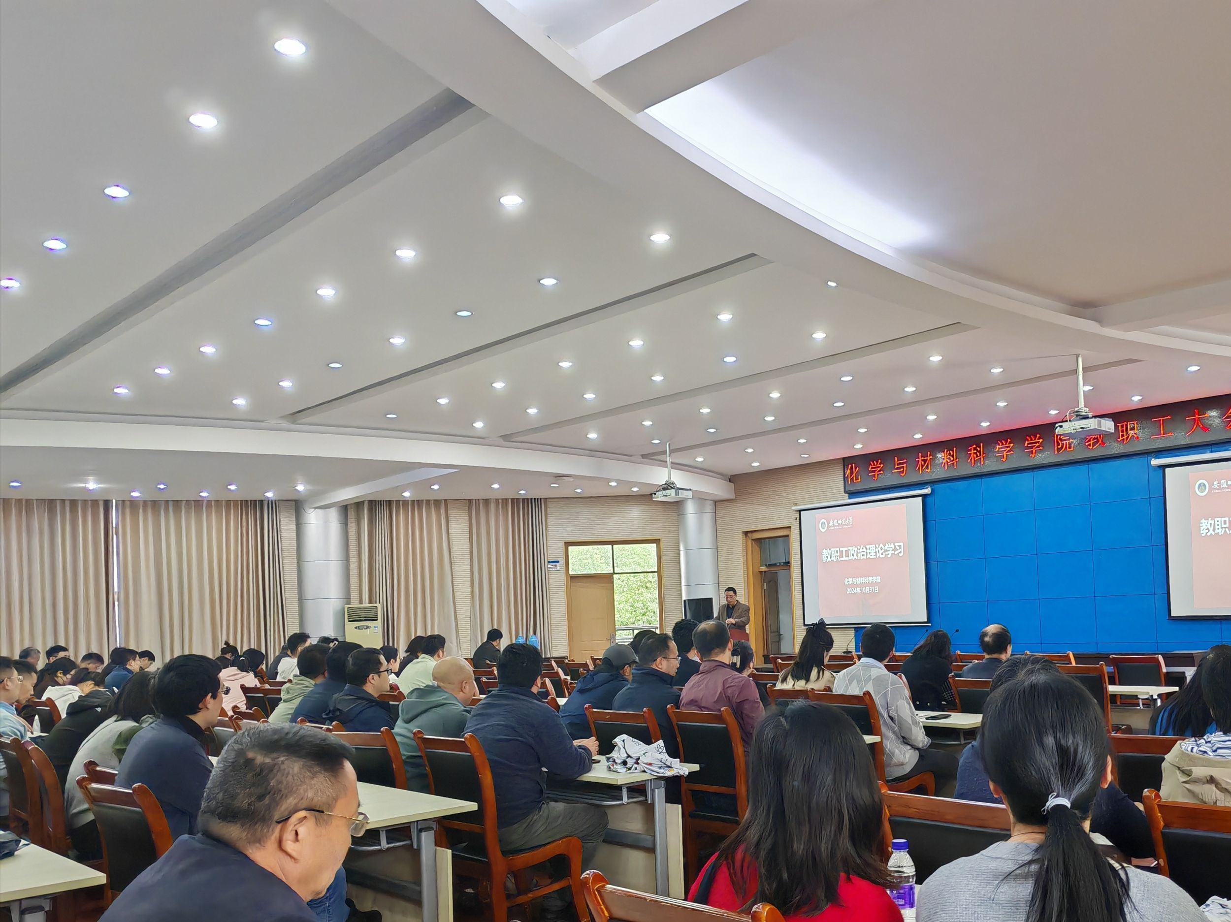 10月31日,美高梅4858线路登录召开教职工大会,专题学习习近平总书记在安徽考察时的重要讲话精神,全体教职工参加会议。会议由学院党委书记汪俊武主持。
