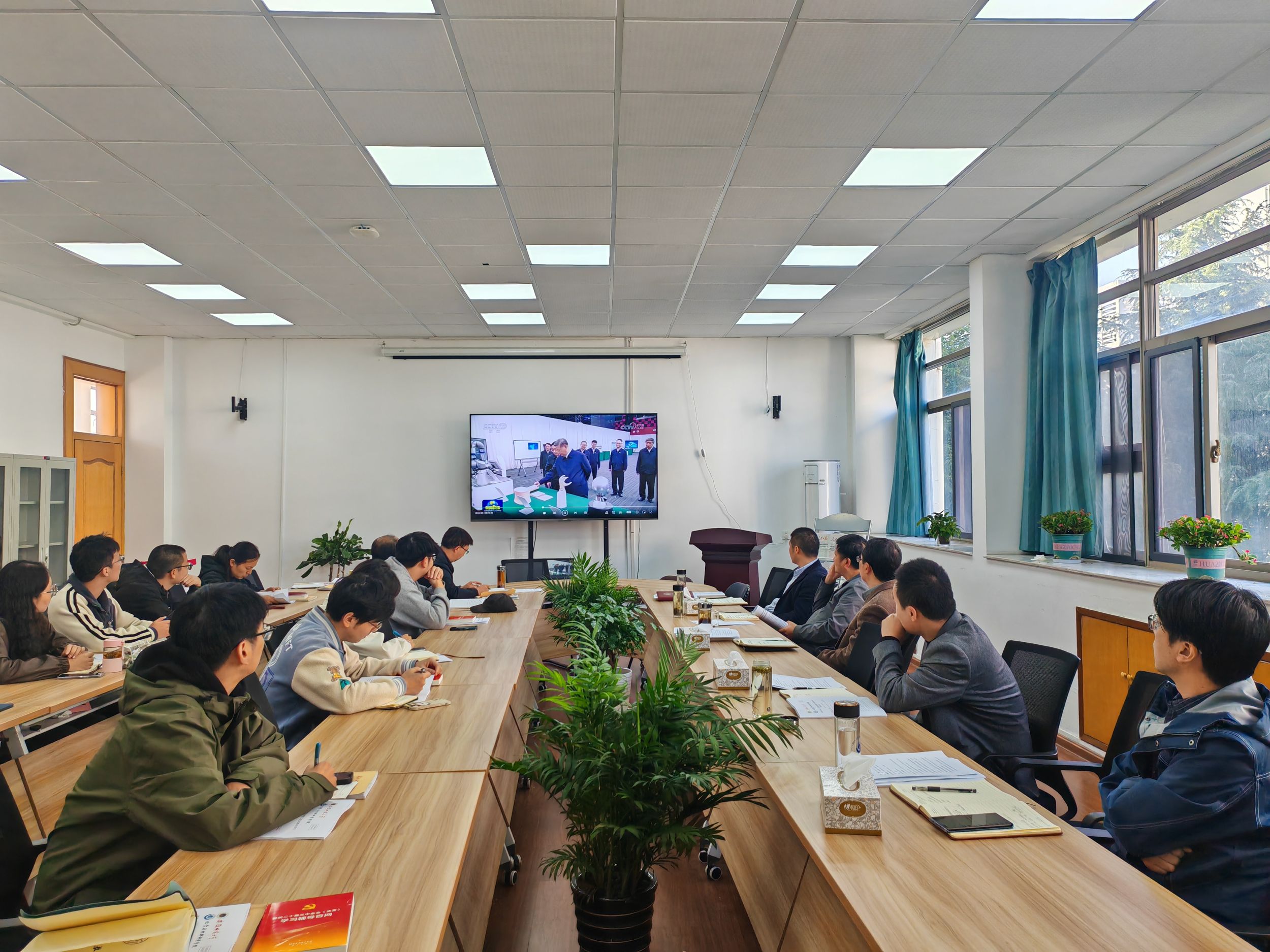 视频学习阶段,与会人员集体观看了习近平总书记在安徽考察和省委常委会召开会议专题传达学习习近平总书记考察安徽重要讲话精神的新闻视频。集体学习阶段,院党委书记汪俊武领学习近平总书记在全国教育大会上的重要讲话精神、习近平同志《论教育》文章“办好中国特色世界一流大学”节选。院党委副书记、纪委书记李古州领学习近平总书记在甘肃、陕西和福建等地考察时的重要讲话精神和中共中央办公厅关于印发《党纪学习教育总结报告》的通知。副院长周双六领学省委十一届七次全会精神,副院长陈郑领学梁言顺同志在全省领导干部大会上的讲话精神。与会人员还以个人自学等形式学习了《中国共产党巡视工作条例》和《中华人民共和国教师法》等有关内容。专题研讨阶段,副院长崔鹏以《坚持以习近平总书记考察安徽重要讲话精神为引领,推动学校本科教育教学评估顺利开展》为题作专题发言。