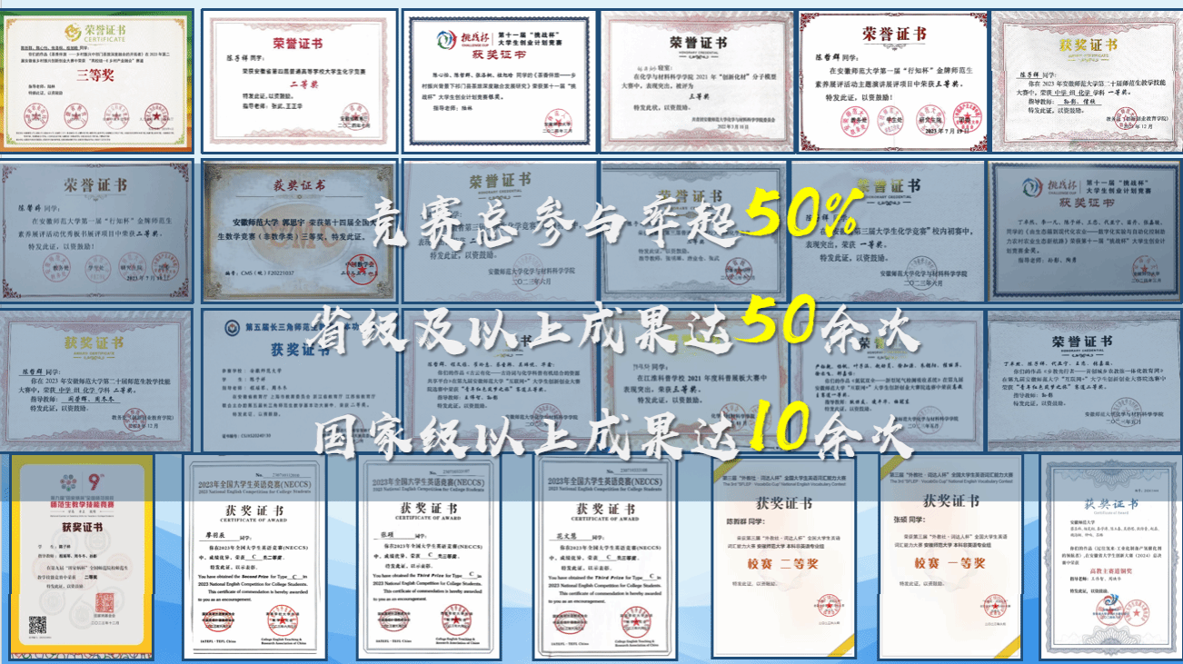 精准引导,校准职业发展“方向盘”。班级首届金牌、银牌师范生总数达34人;大创立项12项,发表论文申请专利4人次,竞赛总参与率超50%,获省级以上奖项50余次。