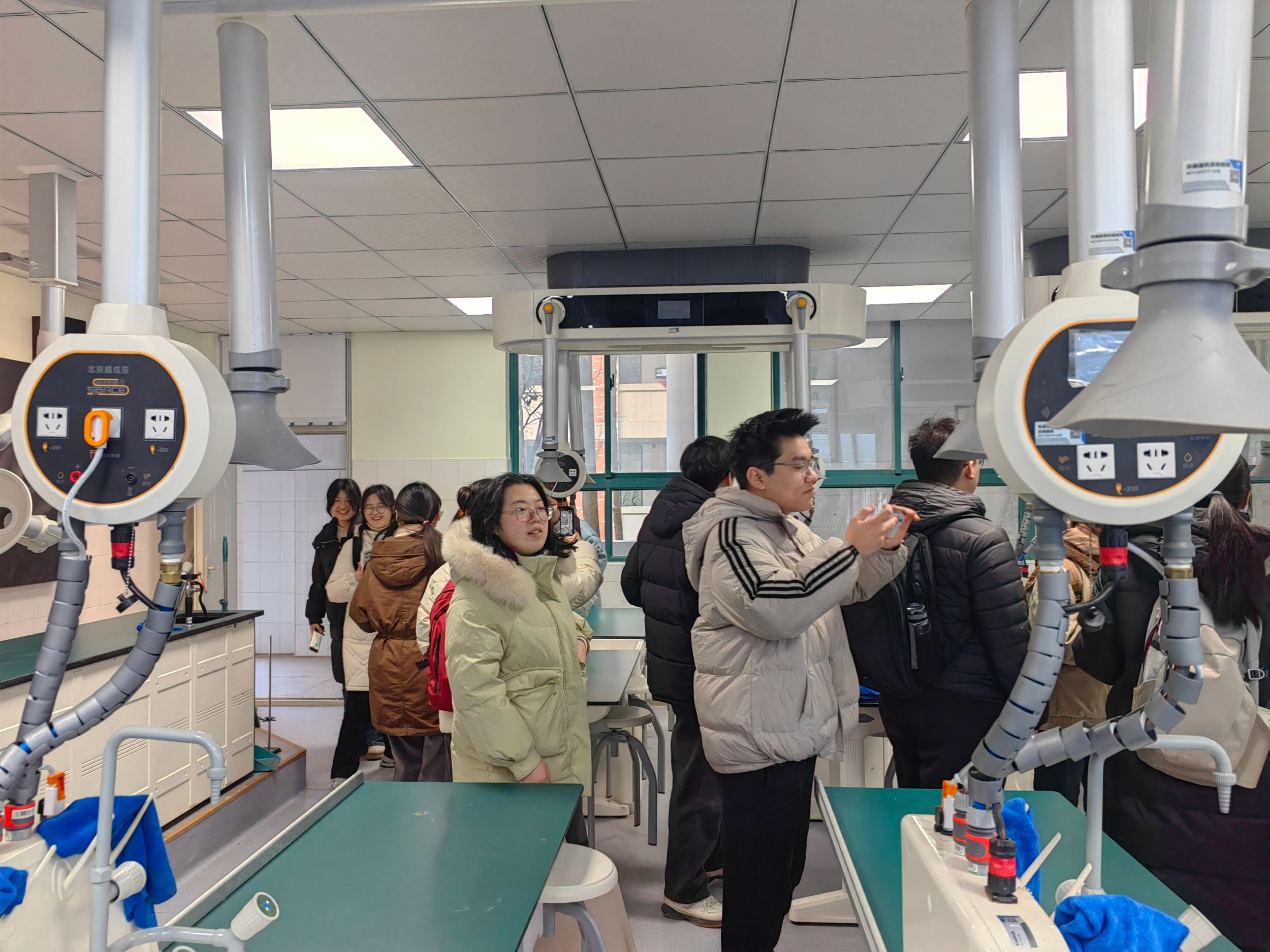 冬日暖阳下的校园里,芜湖第十二中学李明主任热情接待了美高梅4858线路登录师生,并带领大家参观了学校的化学、物理、生物及数字化实验室。实验室里,各类先进的实验设备摆放整齐,李明老师详细介绍了仪器的功能与使用方法,以及实验室在日常教学和科研活动中的重要作用,同学们纷纷驻足聆听,对中学化学实验教学的实际场景有了直观的认识,不少同学还积极提问,与李老师进行了深入的交流,表现出对实验教学的浓厚兴趣。