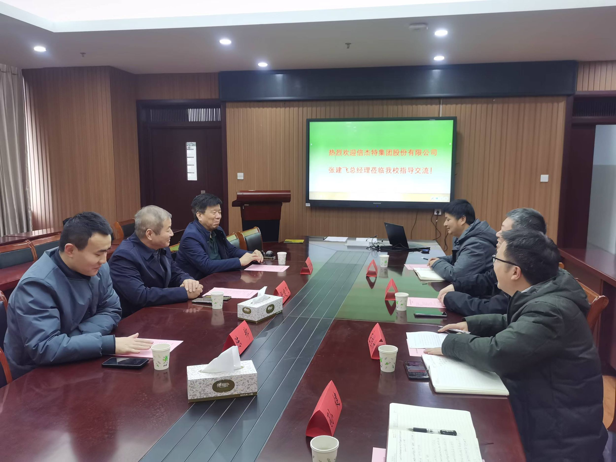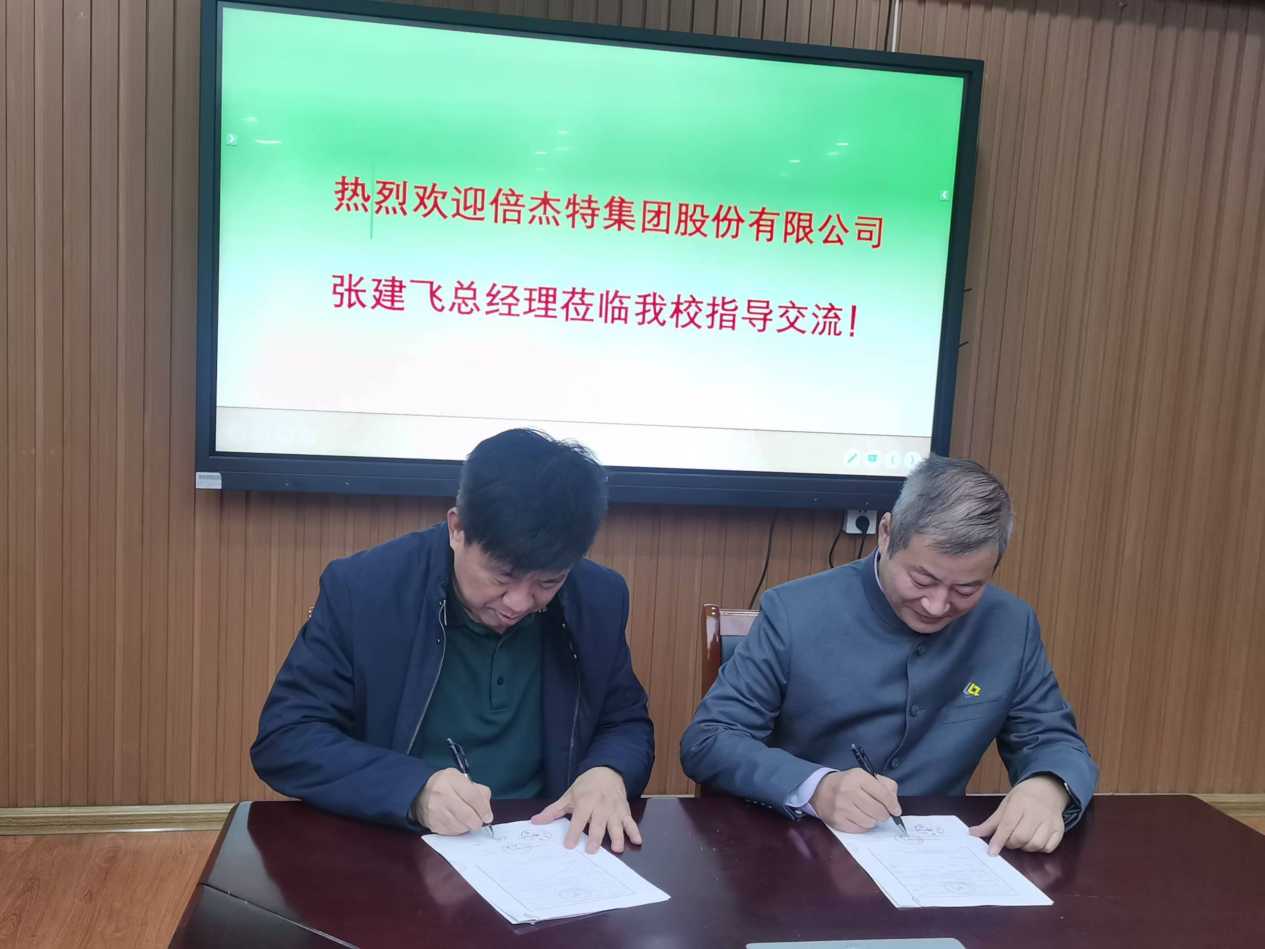 2025年1月20日,倍杰特集团股份有限公司与美高梅4858线路登录王晓琳教授项目合作签约仪式在礼勤楼702室举行。倍杰特集团股份有限公司张建飞总经理,校科研处徐彬处长、美高梅4858线路登录王晓琳教授、庄桂林院长、周双六副院长、陈郑副院长参会。会议由周双六副院长主持,科研处徐彬处长代表学校欢迎张建飞总经理莅临我校指导交流,并介绍了学校的发展历史,科学研究以及社会服务方面的情况。
