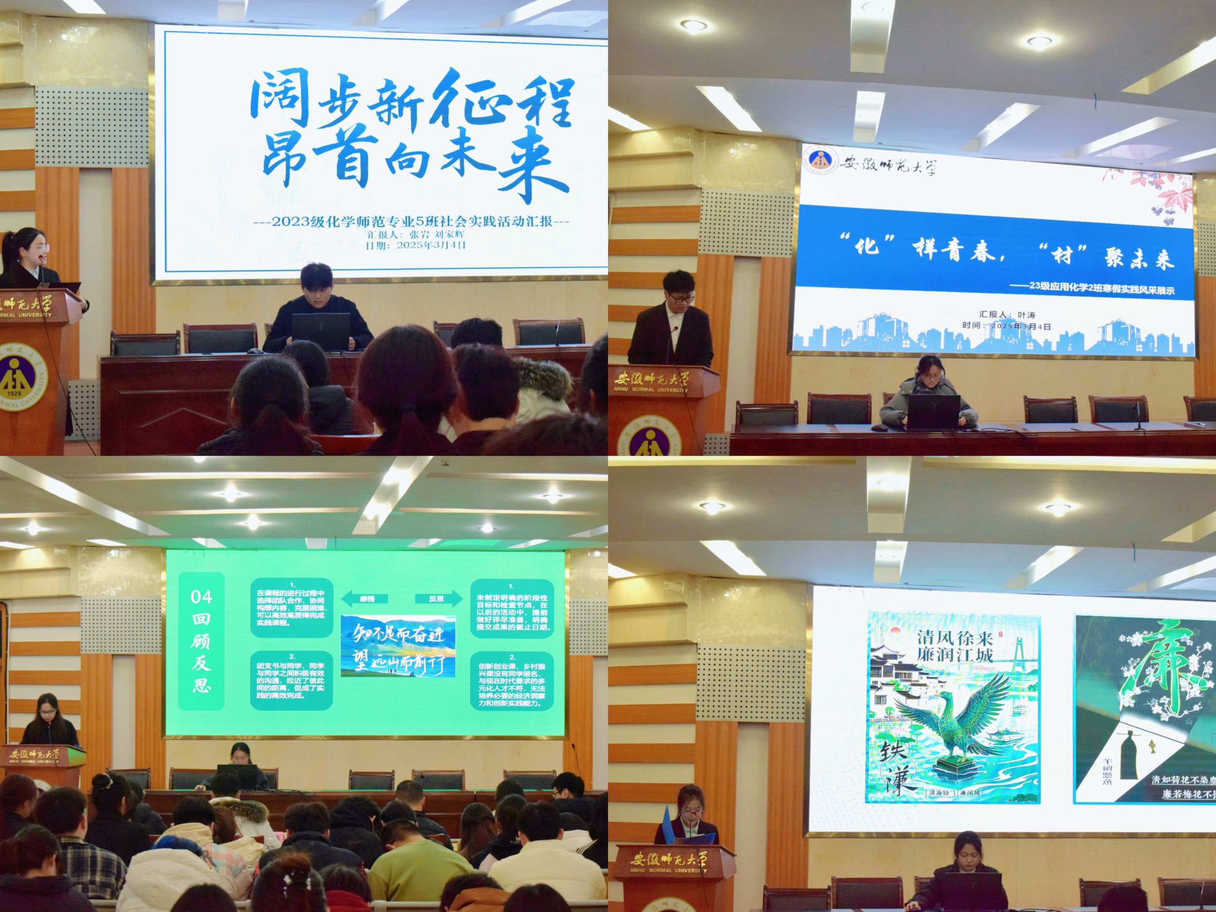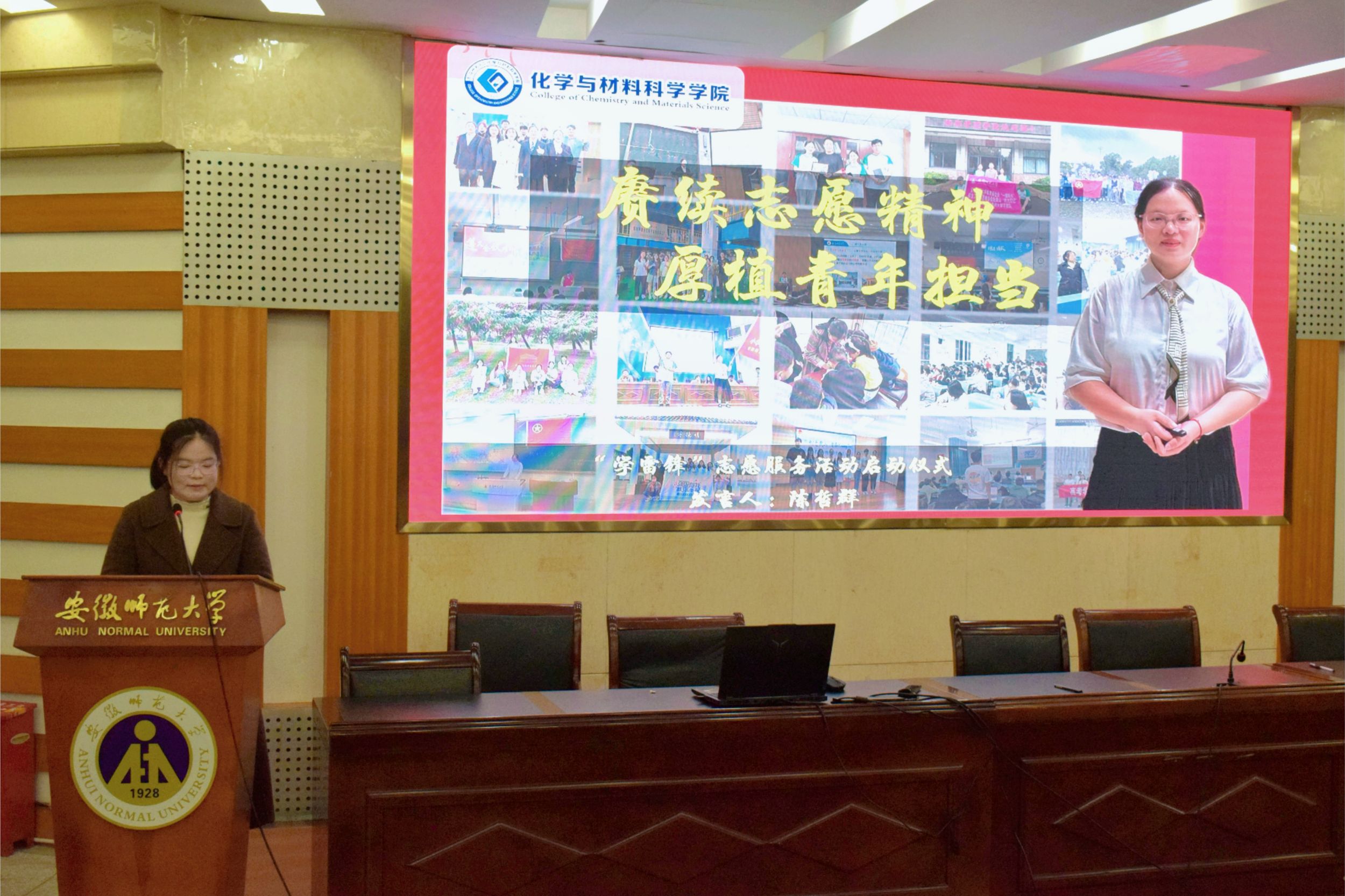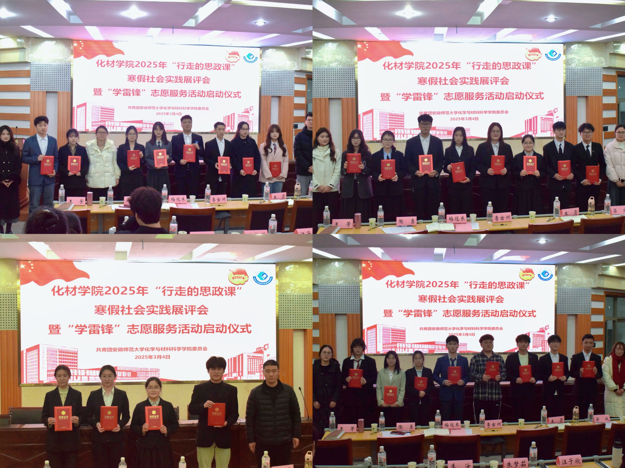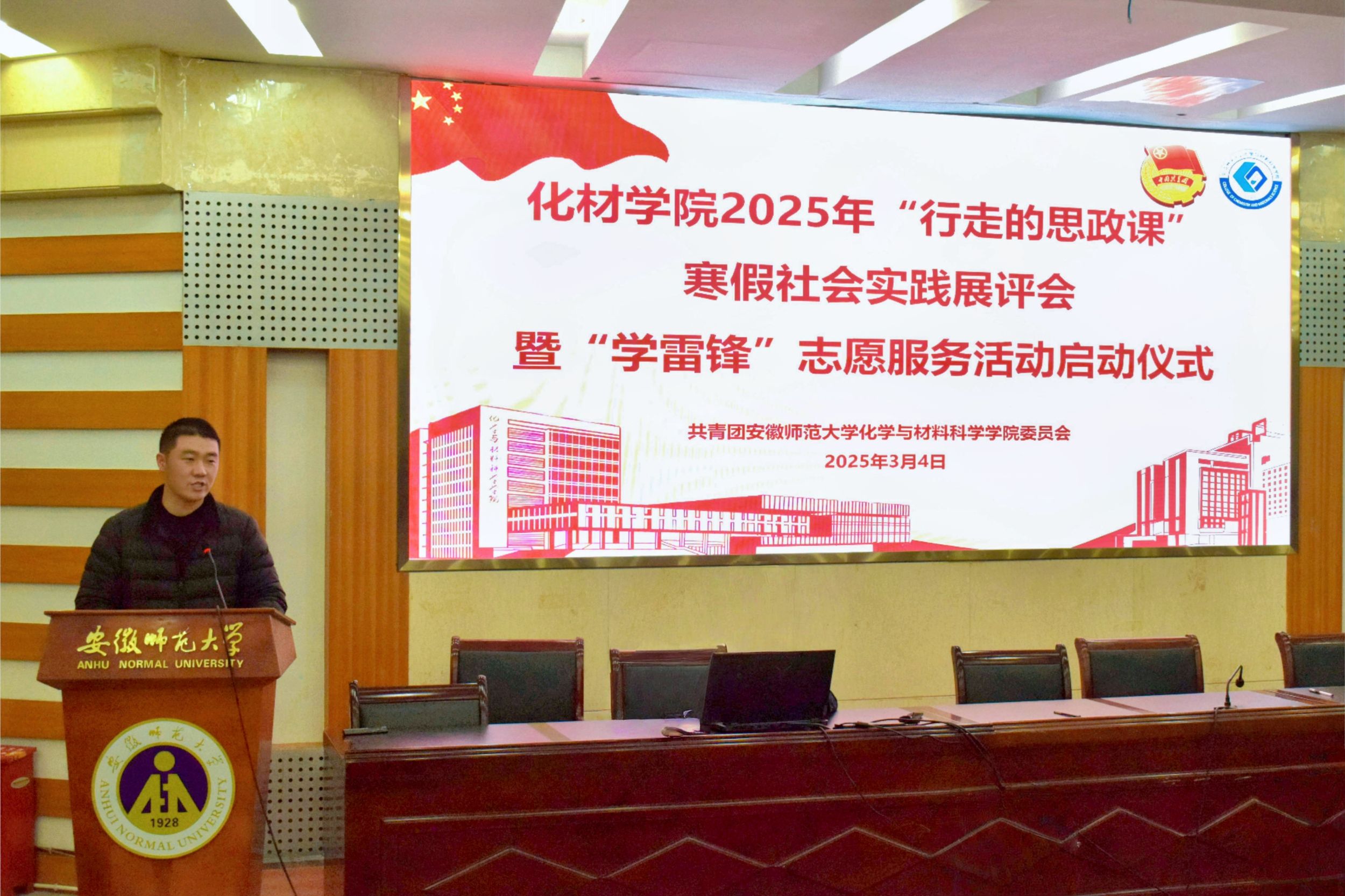 为全面展示2025年“行走的思政课”寒假社会实践成果,进一步激发青年学子的社会责任感和使命感,提升志愿服务能力。3月4日,美高梅4858线路登录在学苑楼8号楼副楼报告厅举办寒假社会实践展评会暨“学雷锋”志愿服务活动启动仪式,美高梅4858线路登录党委副书记李古州、团委书记梅冠东、团委副书记王霞、全体专兼职辅导员以及2023级、2024级各班学生代表出席会议。本次会议由2023级化学师范专业张芷萱主持。